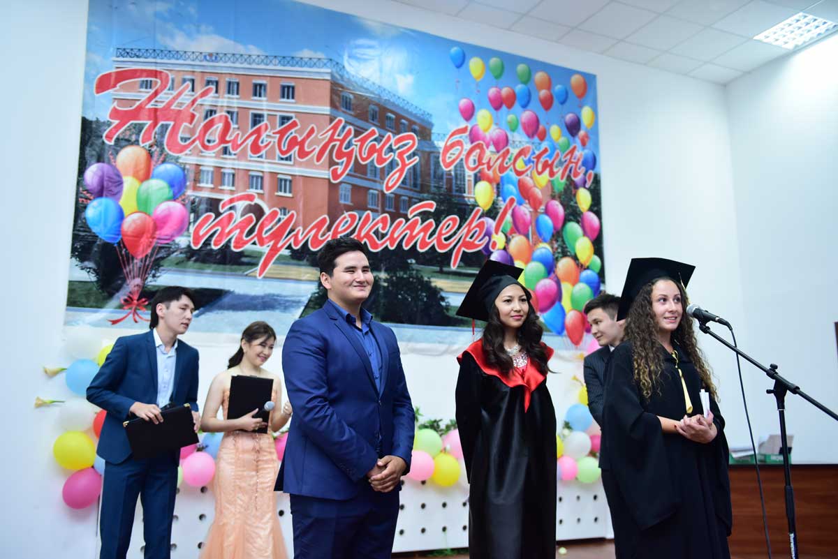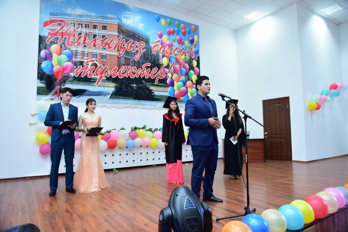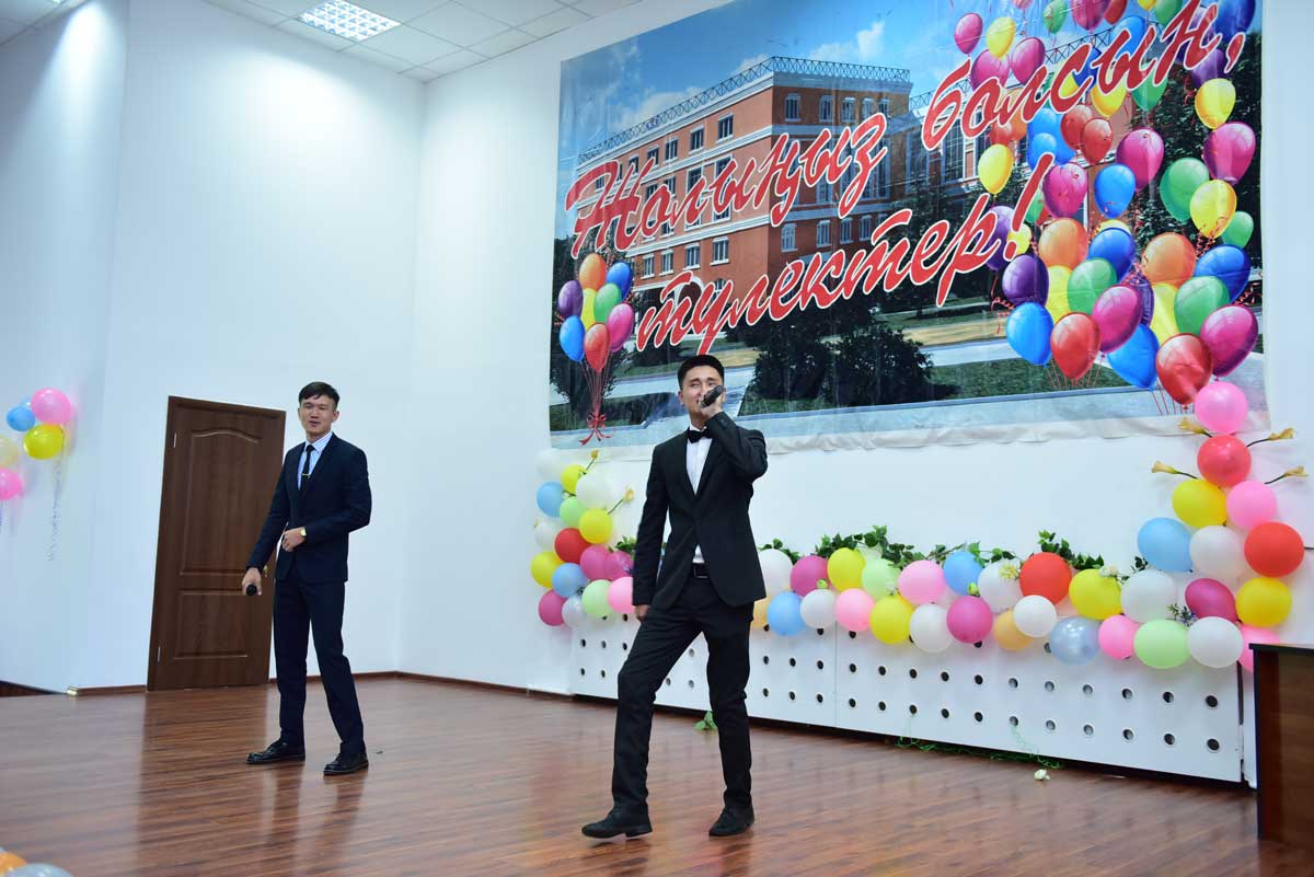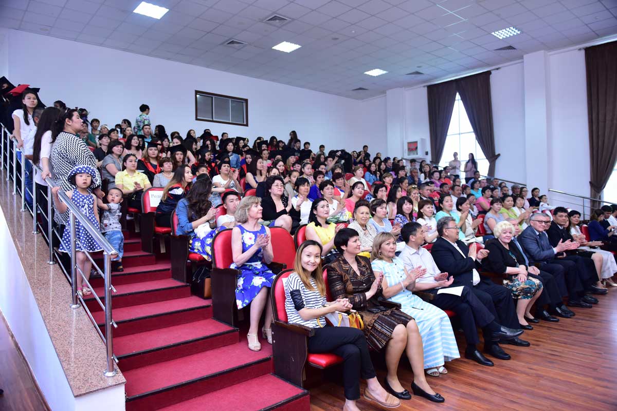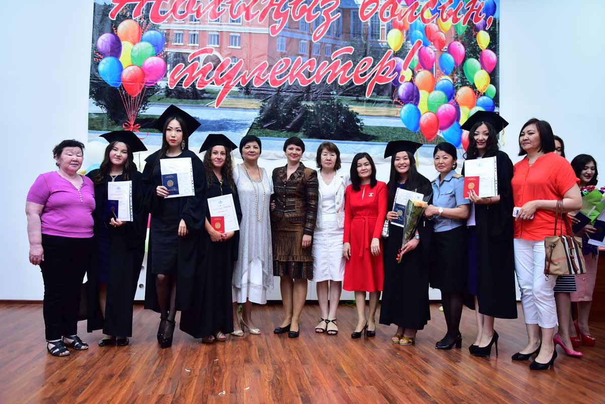 The graduates were also congratulated by: Prorector on educational and scientific work, Academician, Doctor of Historical Science, Professor Akhmetov Kadyr Abilzhanovich, the Head of the Department of Pedagogy, Doctor of Pedagogical Science, Professor Sarssekeyev Bauyrzhan Saparovich, the Head of the Department of the Kazakh and Russian Philology, Candidate of Philological Science, Docent Kokisheva Nazerke Magazovna, Docent of the Department of Economic and Mathematical Disciplines, Candidate of Technical Science Tazhbenova Gulzhan Daltonovna.