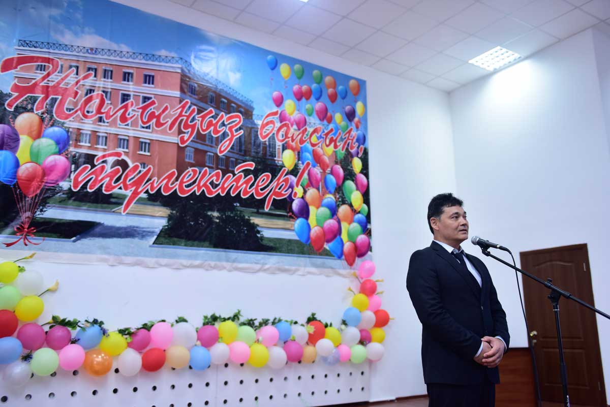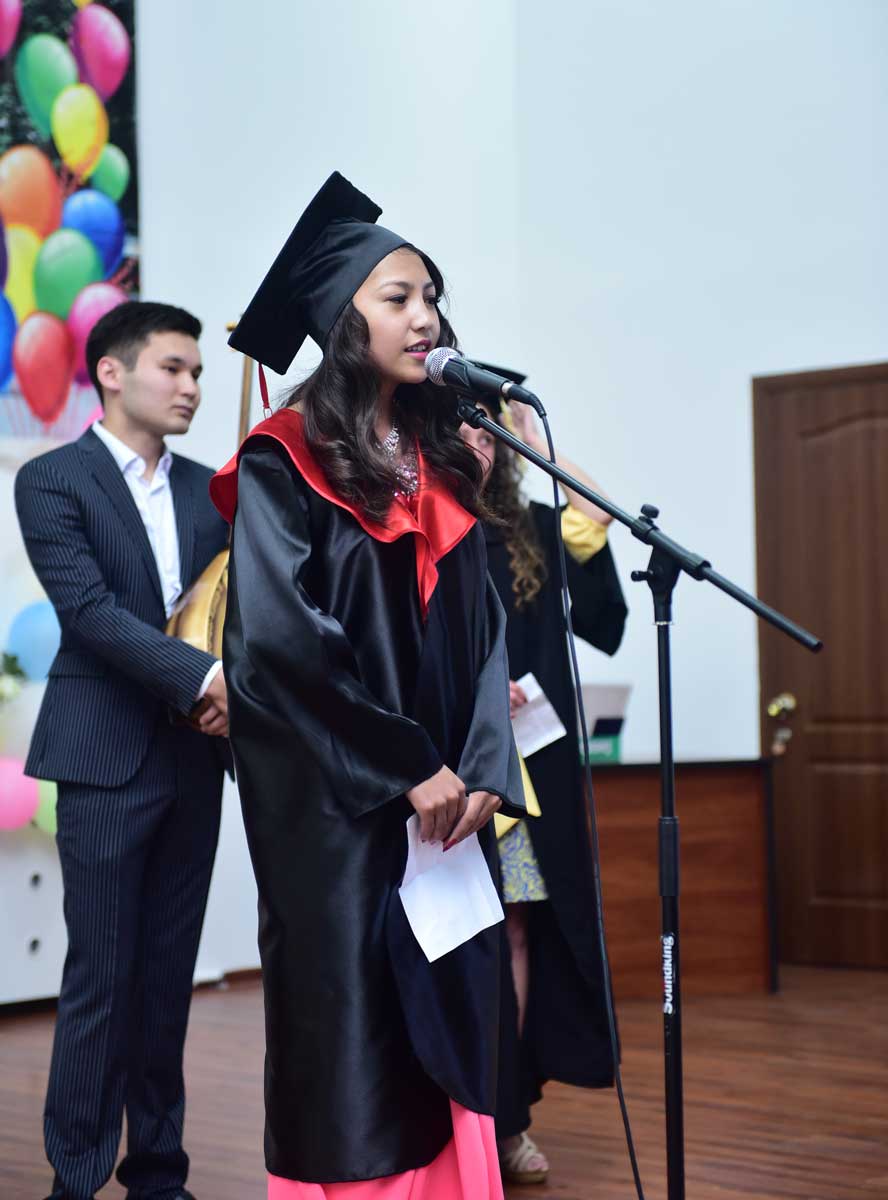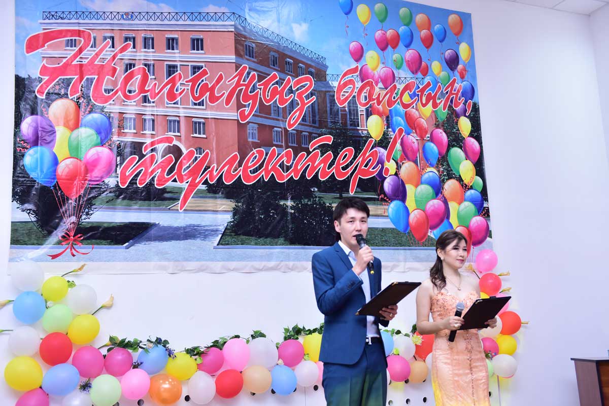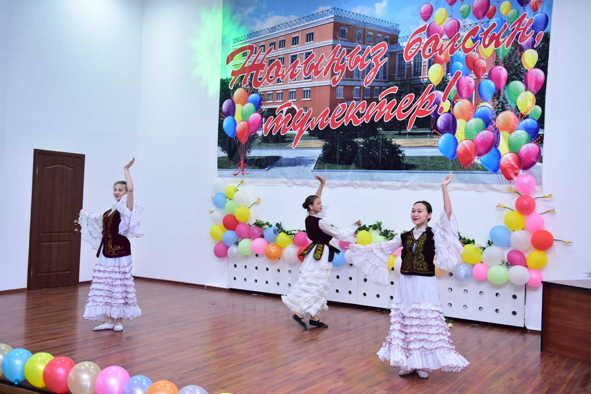 The graduates were also congratulated by: Prorector on educational and scientific work, Academician, Doctor of Historical Science, Professor Akhmetov Kadyr Abilzhanovich, the Head of the Department of Pedagogy, Doctor of Pedagogical Science, Professor Sarssekeyev Bauyrzhan Saparovich, the Head of the Department of the Kazakh and Russian Philology, Candidate of Philological Science, Docent Kokisheva Nazerke Magazovna, Docent of the Department of Economic and Mathematical Disciplines, Candidate of Technical Science Tazhbenova Gulzhan Daltonovna.