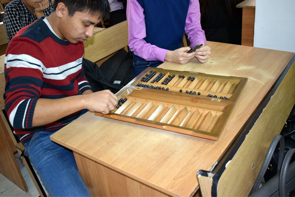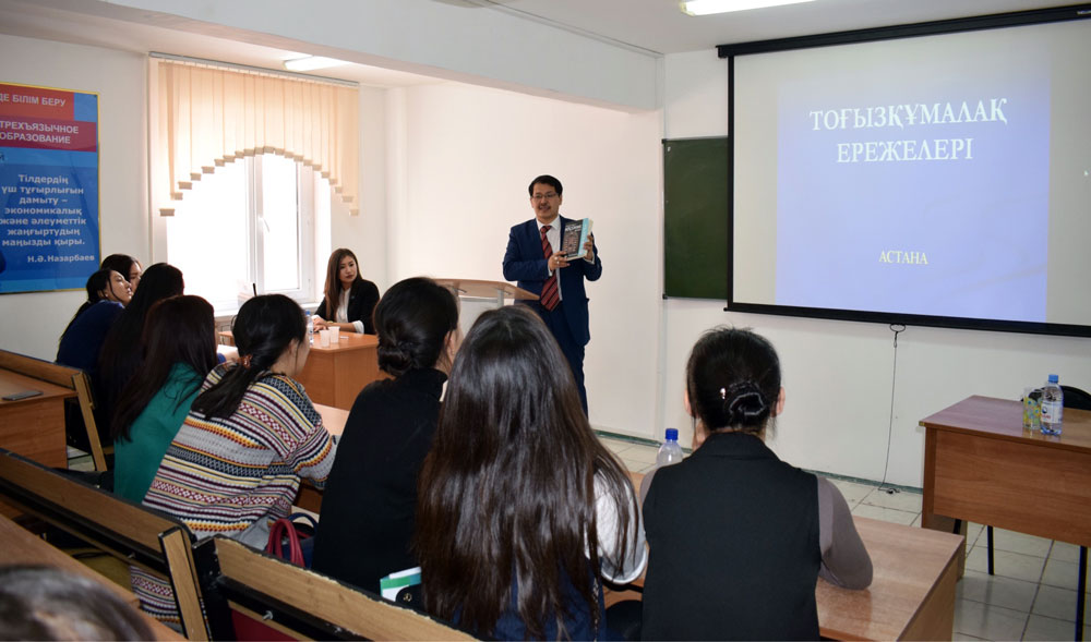 Within this event the honorary trainer of the Republic of Kazakhstan, the Candidate of Philological Scxienced Shotayev Maxat Yessenbekovich conducted the master-class for the students on the interesting national game “Тоғызқумалақ».