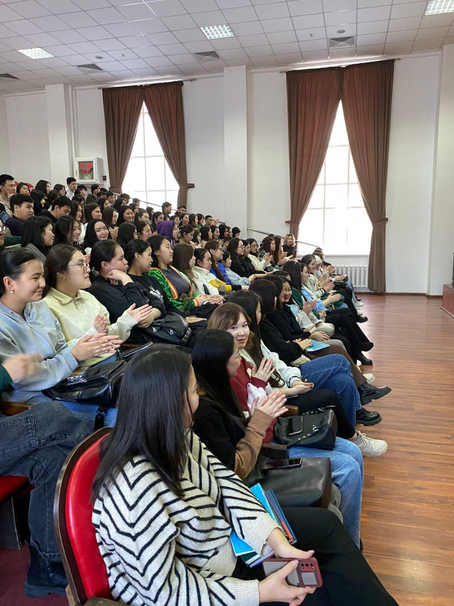 The vice-rector for educational work, candidate of pedagogical sciences, professor Ospanova Ya. N. addressed the audience with a welcoming speech. Further, the students were addressed by: chief specialist of the prevention department of the Anti-Corruption Department in Astana Ansaganova A. A.; Deputy Executive Director of NGO “Adildik Zholy” Kondybaev A.K.