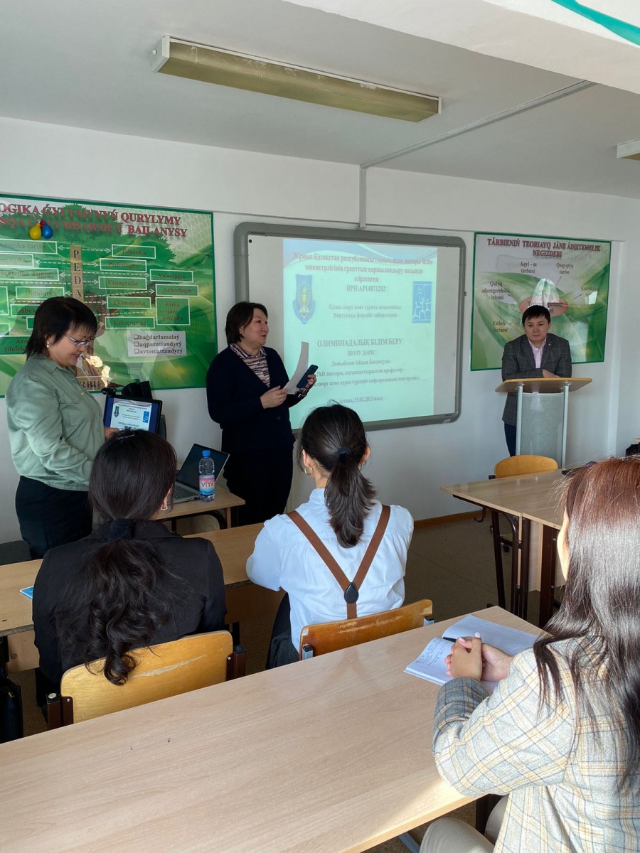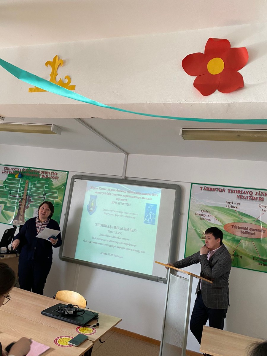 On February 15, 2023 on the basis of cooperation agreement with the Kazakh National Pedagogical University named after Abay and the Eurasian Humanities Institute named after A.K. Kussayinov, PhD Doshibekov A.B. and Professor Absatova M.A. read guest lectures for students of the educational program 6B01303 – “Pedagogy and methods of primary education” on the following topics: “Olympic education” and “Education management in an innovative digital environment” in order to put into practice research materials on the project “Virtual foresight laboratory for the introduction of Olympic education in the system of general education school”.