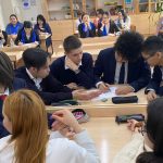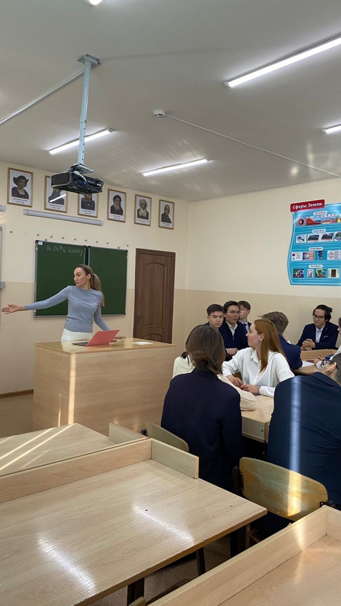 On February 24, 2023 senior lecturer of the Department of Foreign Languages Gilya A.A. and students of the academic group PD-22-01 (1st year, educational program “Translation major”) Savorovskaya N. and Yaichnikova Yu. held open lesson in the 10th grade of gymnasium school №. 30.