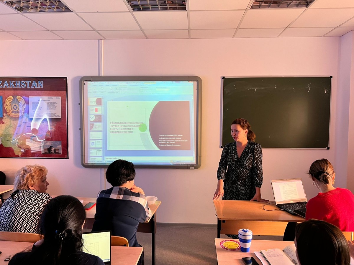 On February 27, 2023, the regular meeting of the Department of Foreign Languages was held. There was a discussion of the organization of career guidance work among graduates of schools in the city and regions, reports were also heard from the heads of educational practice for second-year students. PhD, docent Ospanova Zh.T. held methodological seminar on the topic: “Recommendations for the preparation of research work (on the example of a thesis)”.