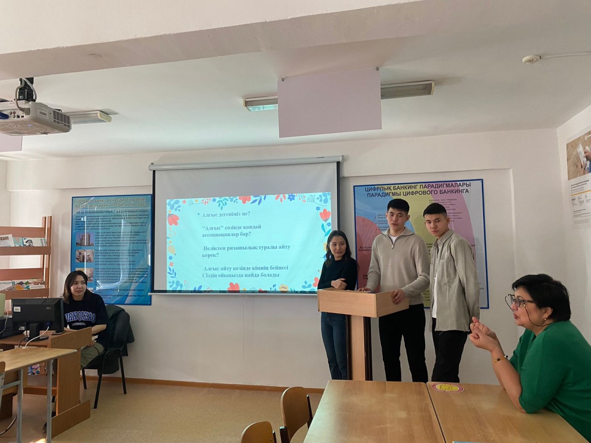 On February 28, 2023, the curators of the Department of Economic and Mathematical Disciplines Dauletkhanova Zh.D. and Sadykov M.A. held curatorial hour in the academic groups K-21-01, F-20-01 (2 – 3 courses, the educational program “Finance”), dedicated to March 1 – The Gratitude Day.