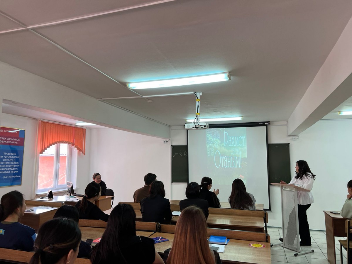 On March 1, 2023, Senior Lecturer of the Department of Legal Disciplines Tortaeva A. E. held curatorial hour in the academic group YuK-20-01 (3rd year, educational program “Jurisprudence”) on the topic: “March 1 – The Gratitude Day.” During the curatorial hour, the film “With gratitude to the Kazakh people” was shown.