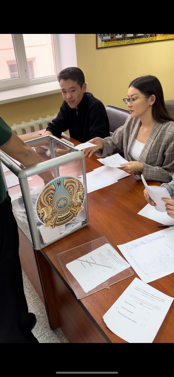 On March 10, 2023, the elections of the President of the Student Parliament were held at the A.K. Kussayinov Eurasian Humanities Institute. Any student of our university could submit his candidacy for participation in the elections. EAGI rector A.D. Issmayilov, vice-rector, dean, head of the registrar’s office, deputy dean, heads of departments, chairman of the KDM, as well as student activists were the first to support the candidates and vote for them. Throughout the day, EAGI employees, teachers and students voted for candidates. According to the voting results, the 3rd year student of the educational program “Jurisprudence” Salimzhuarov Gani won.
