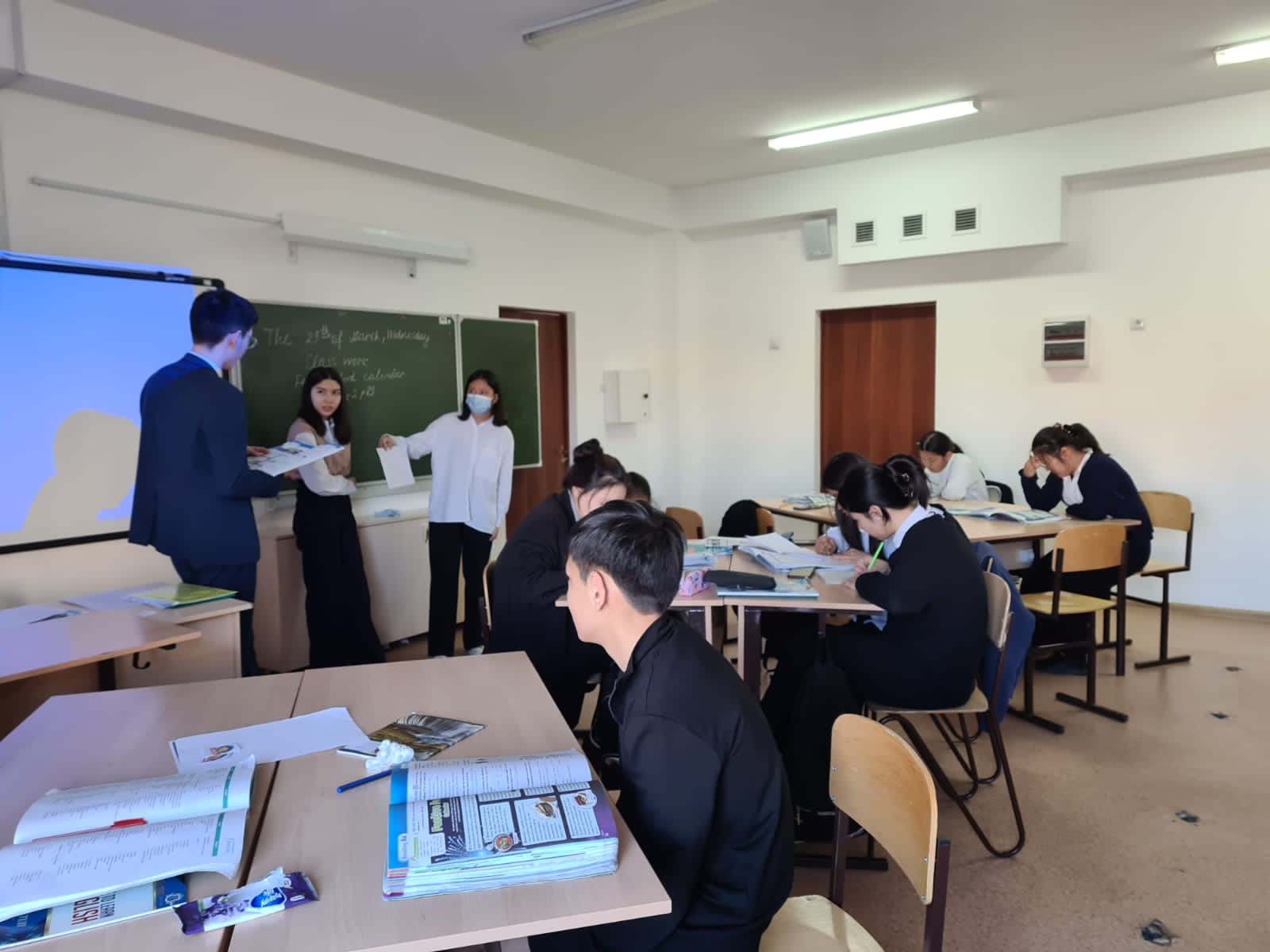 On March 29, 2023, the teacher of the Department of Foreign Languages, Docent Baiturina U. K. attended the open lesson in English at the school-gymnasium No. 87 named after Abai Kunanbaev. The lesson was conducted by a student Anuarbek Bayel (4th year, educational program “Foreign language: two foreign languages”) as part of the pedagogical practice.