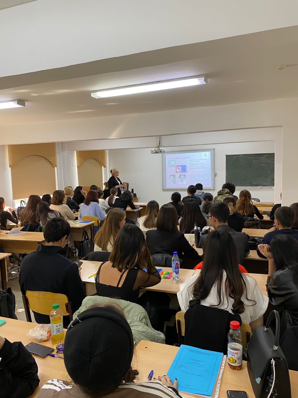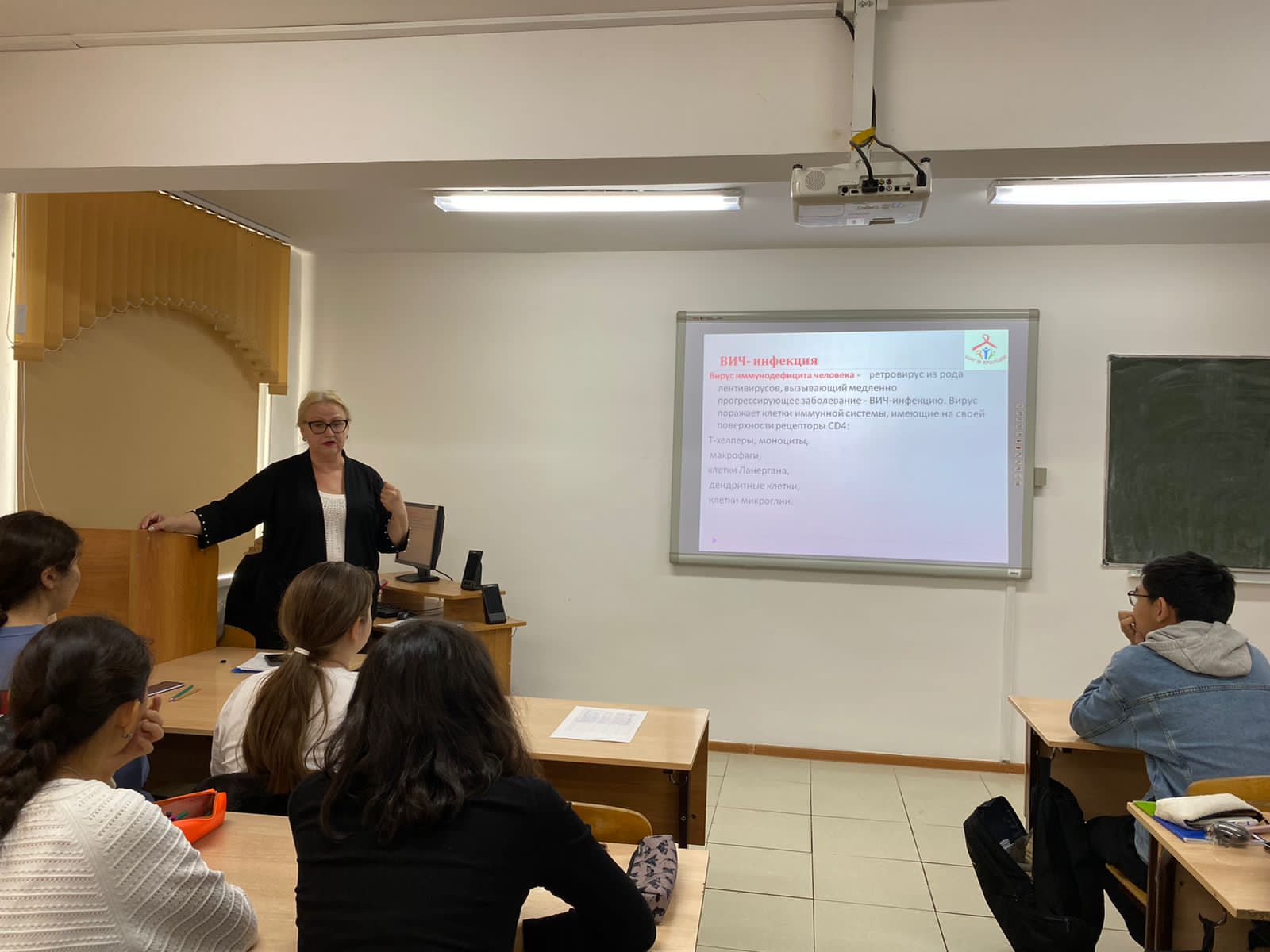 On September 14, 2023 within the walls of the A.K. Kussayinov Eurasian Humanities Institute the meeting was held with students and with the director of the “Step into the Future” organization of the Center for HIV Prevention in Astana Turymova A.T. and doctors of the department of prevention and socio-psychological assistance of the State Public Enterprise at the “City Clinic No. 3” of the Akimat of Astana. During the meeting, they discussed the prevention of HIV infection and drug addiction, and possible risks of HIV transmission. Particular attention was paid to developing young people’s commitment to HIV testing and tolerance towards people living with this disease.