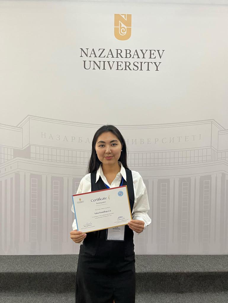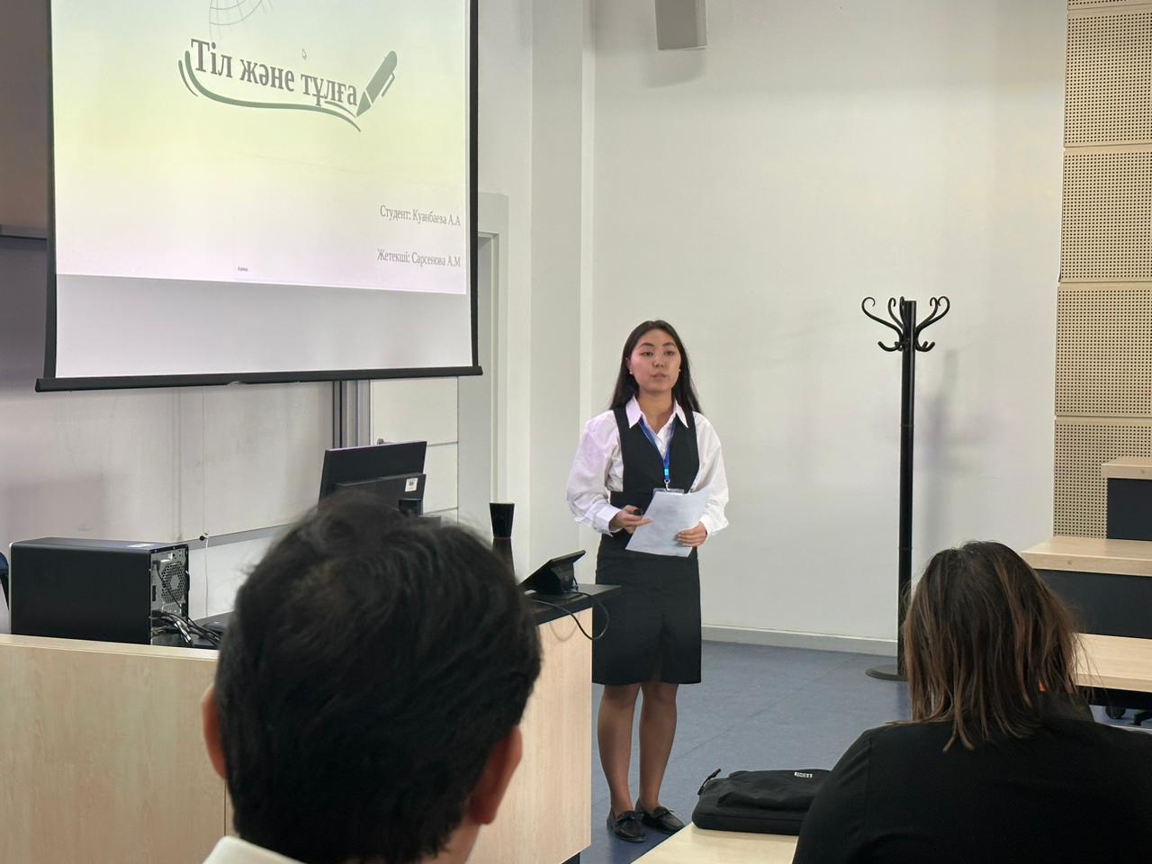 On September 30, 2023, 4rd year student of the educational program “Foreign Language: Two Foreign Languages” (academic group ShT-20-01) Kuanbayeva A. made a report on the topic: “Language and Identity” at the educational student symposium, which was held at Nazarbayev University. Scientific supervisor: senior lecturer Sarsenova A.M.