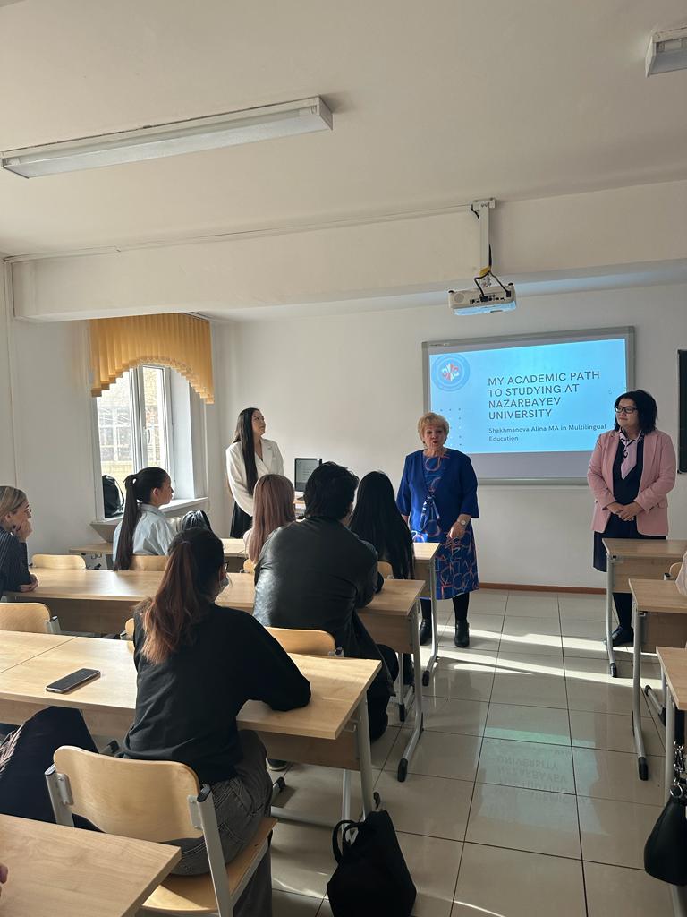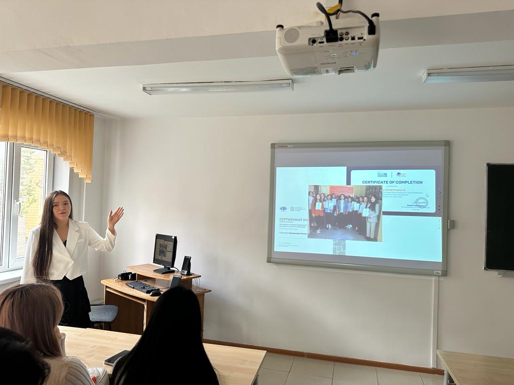 On October 27, 2023, meeting was held between 1st and 4th year students with a 2022 graduate of the Department of Foreign Languages, Alina Shakhmanova, who is currently studying for a master’s degree at the Higher School of Education (Nazarbayev University). Alina shared her experience of entering Nazarbayev University and talked about how to write a motivation letter. The meeting was held in an interactive manner, students received answers to all their questions.