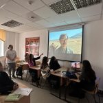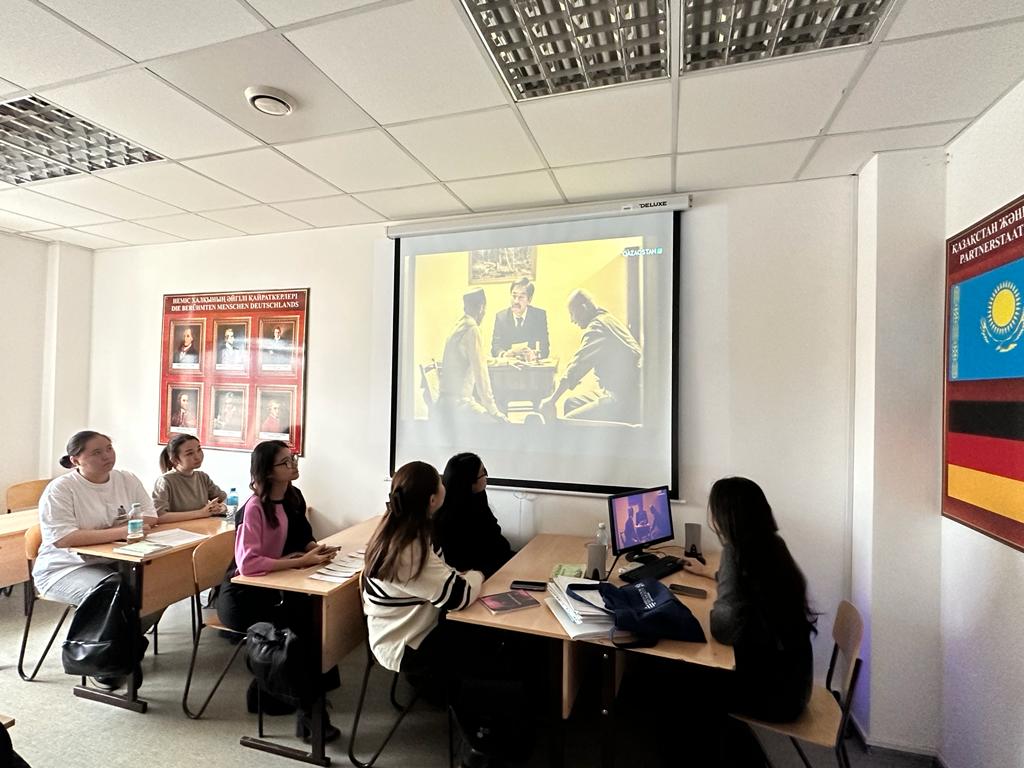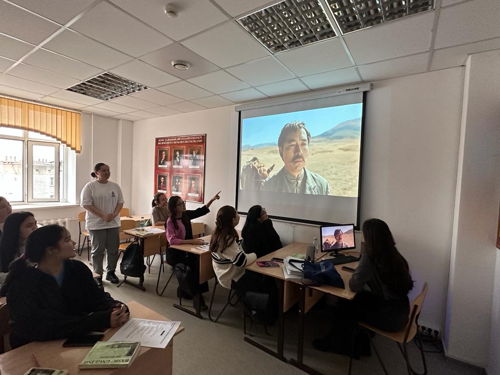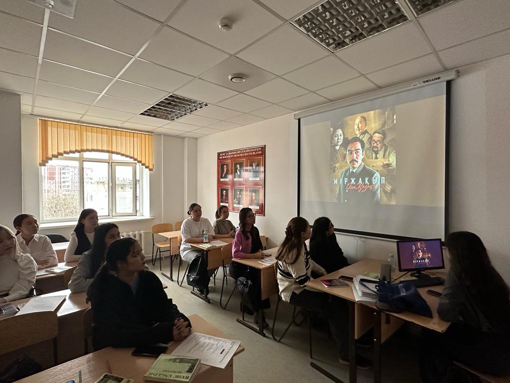 On November 14, 2023, students of academic groups ShT-22-01, ShT-22-02 (2nd year, educational program “Foreign language: two foreign languages”) and curator A.M. Sarsenova watched the film “Oyan, Kazak!”, the film that fosters patriotism and strengthens the national spirit. After watching, the students shared their impressions and exchanged opinions about the film.