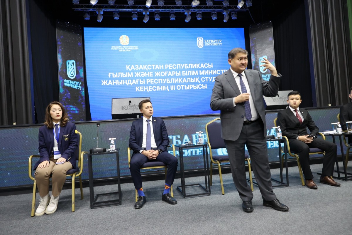On November 16-17, 2023, the III meeting of the Council for Youth Affairs under the Ministry of Science and Higher Education of the Republic of Kazakhstan was held at Satbayev University (Almaty). The event was attended by members of the Republican Student Council, regional chairmen of the Alliance of Students of Kazakhstan, student activists of student self-government organizations and regional student ombudsmen. The Eurasian EAGI was represented by the head of the psychological service of EAGI A.B. Mussiyev.