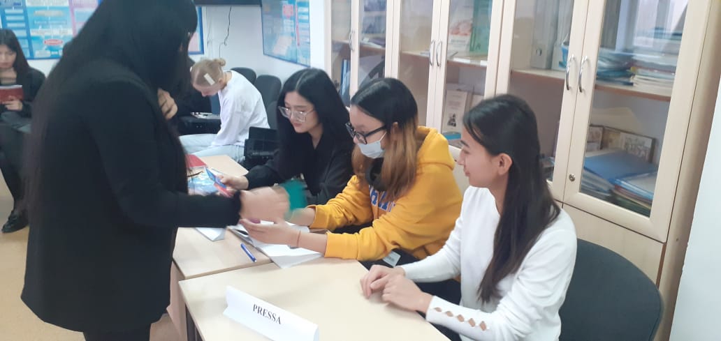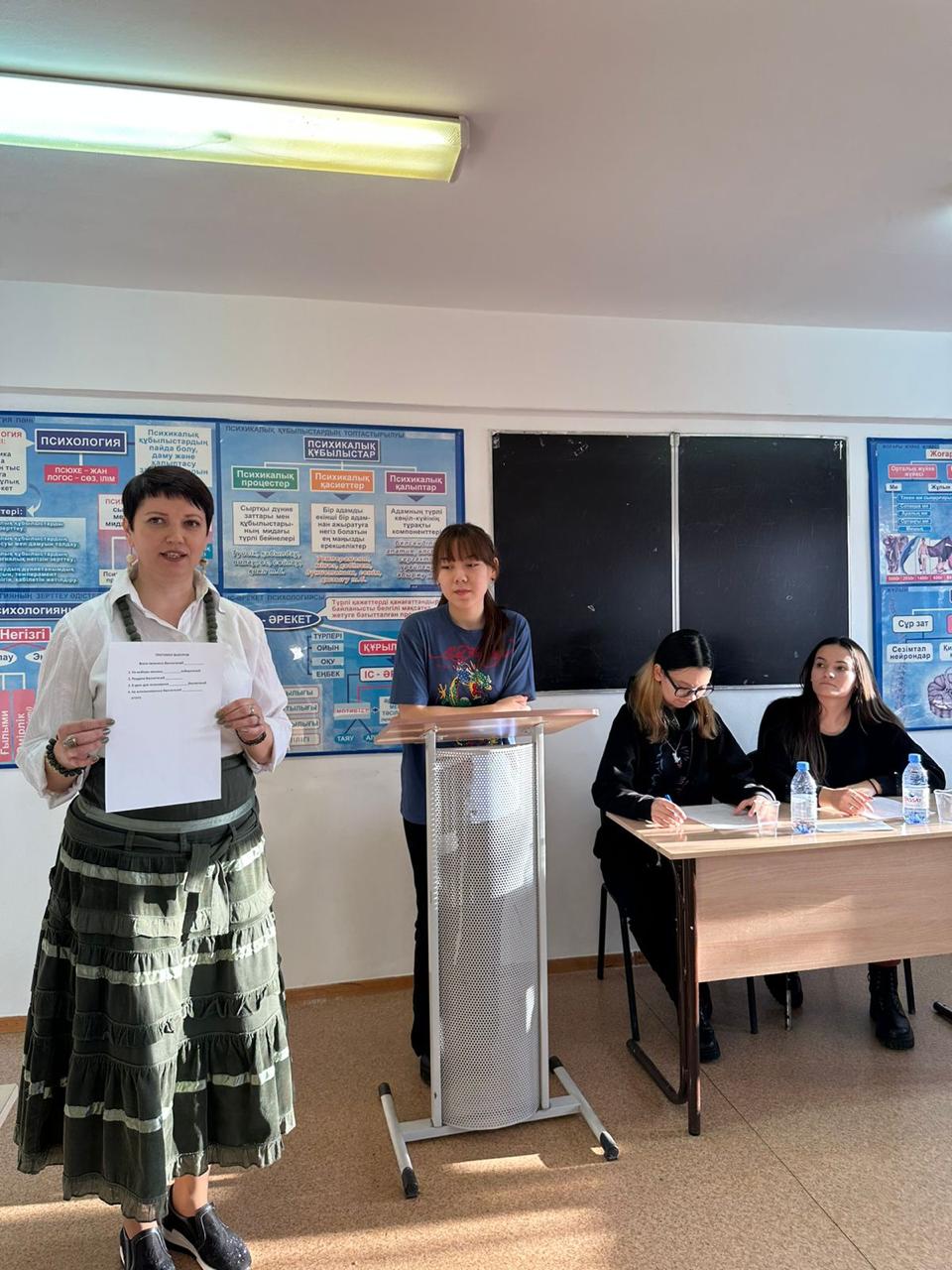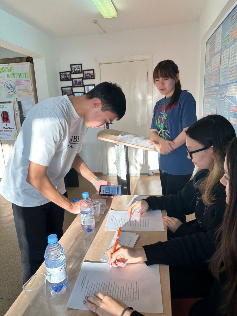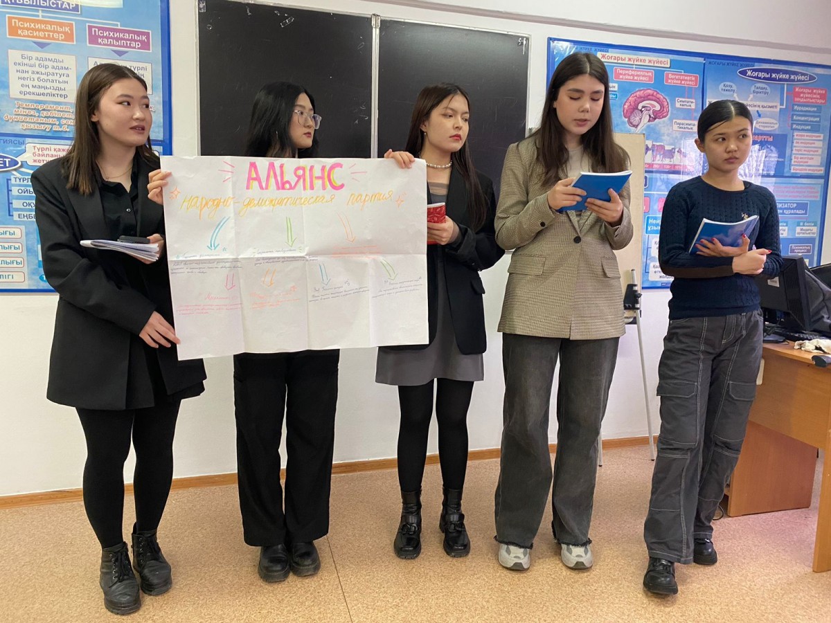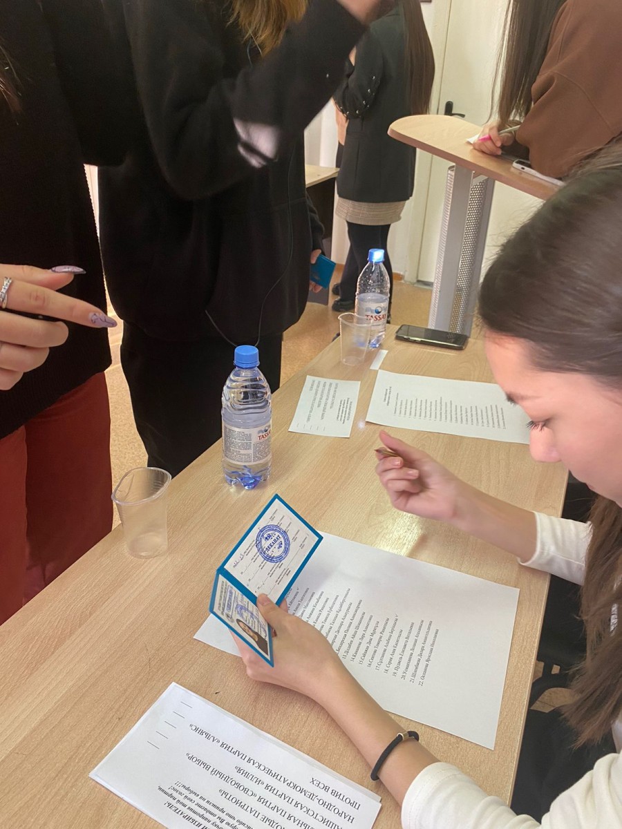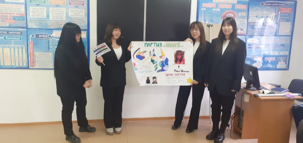 On December 7, 2023, the vice-rector for educational work, candidate of pedagogical sciences, professor Ya.N. Ospanova conducted educational and business game “Elections” among students of academic groups IYA-22-01, PP-22-01.