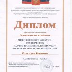 Students of the 1st and 2nd years of the educational program “Foreign Language: Two Foreign Languages” (academic groups YIA-23-01, ShT-22-01) Panchenko Daria and Islyam Alma took part in the International Competition of Student Research Works in Linguistics and Linguodidactics” under the guidance of a senior teacher Sarsenova A.M. The competition was held by the Faculty of Foreign Languages of the Orenburg State Pedagogical University.