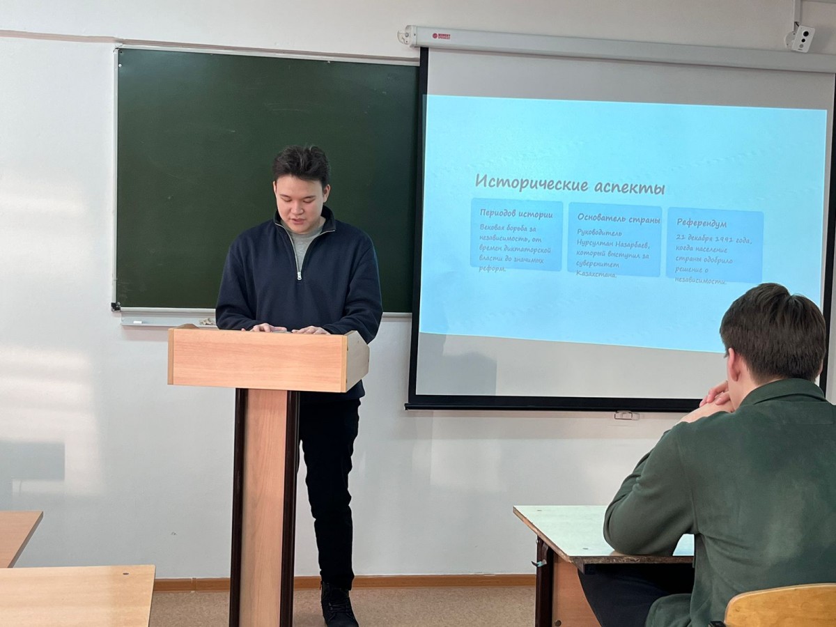 The purpose of the curator’s hour was studying the main stages of the formation of independence of Kazakhstan; development of students’ cognitive interest in the history of their native country; nurturing patriotism and love for the fatherland.