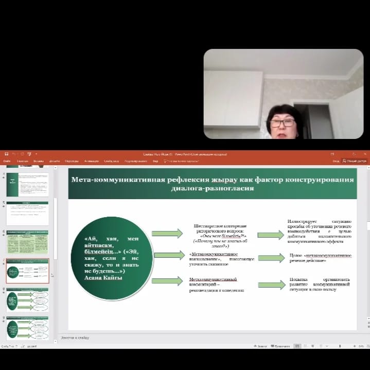 During the lecture Bayturina U.K. revealed the originality of the Kazakh concept sphere through the prism of the dialogue-disagreement genre, considering it as a unique communication event. The lecturer shared her knowledge, exploring the factors of communicative mismatch and ways of expressing it, presenting a new look at the features of the author’s position.