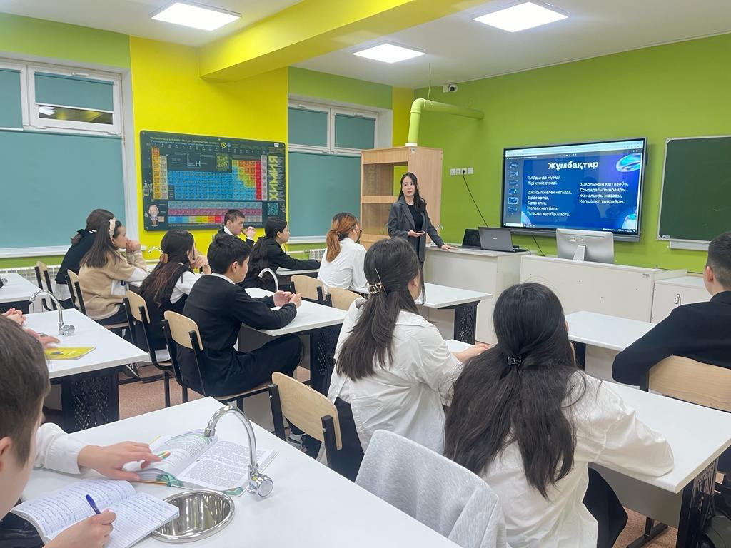 2nd year students of the educational program “Foreign Language: Two Foreign Languages” (academic groups ShT-22-01, ShT-22-02) undergo educational practice in schools in Astana under the guidance of senior teachers A.N. Ergalieva, B. Sh. Kadrina, Sarsenova A.M.. During practice, students apply theoretical knowledge acquired in the classroom, learn to creatively select visual and didactic material in accordance with the lesson plan, and also analyze teachers’ classes, develop scenarios and conduct extra-curricular activities in English.