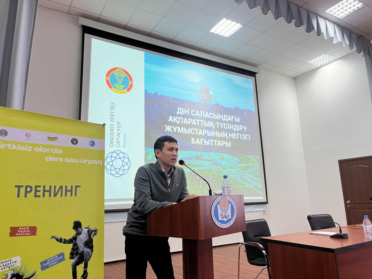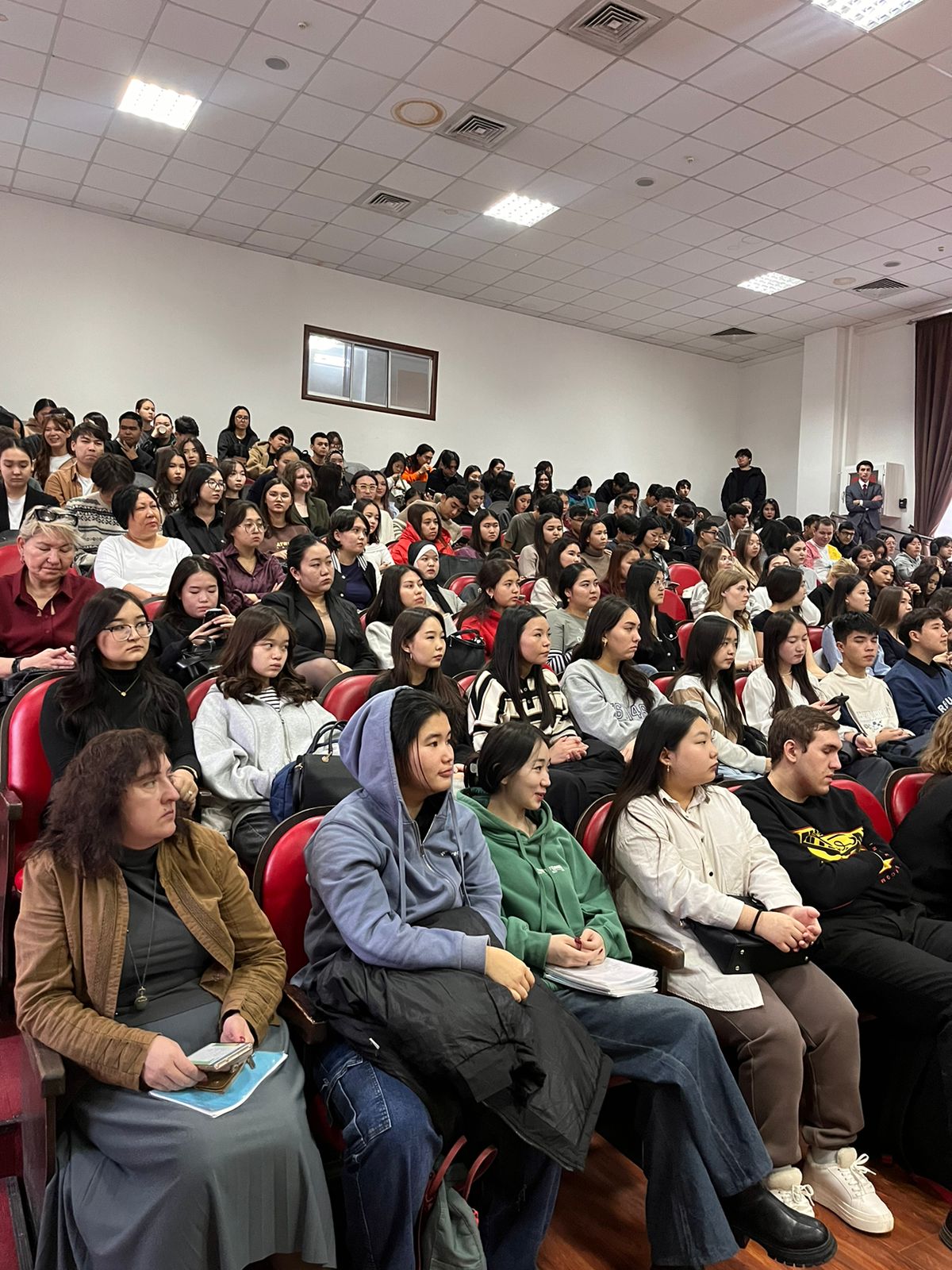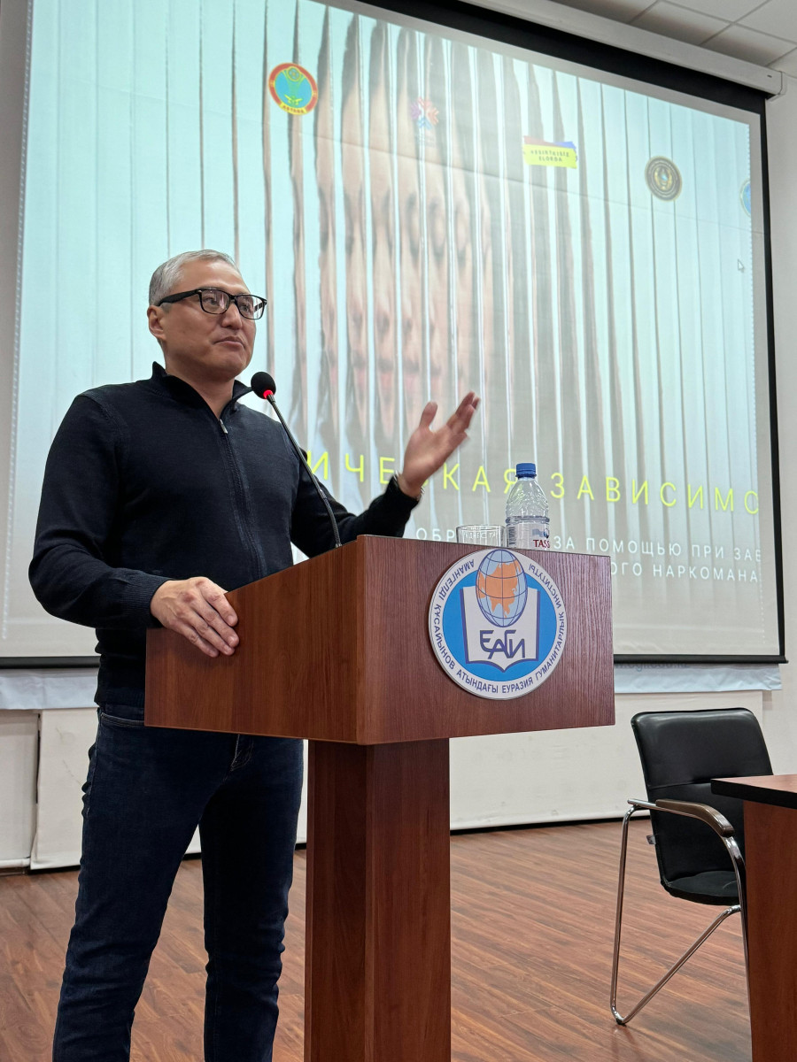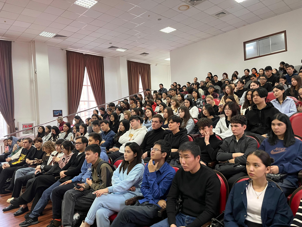 On October 29, 2024, meeting of students with specialists, teacher, Meirbekov D.E. and psychologist Tuyakov A. on the topic of prevention of drug addiction, extremism and terrorism was held at the EAGI within the framework of the project “Astana – a city without drugs”. The meeting was opened with a welcoming speech by the Vice-Rector for Educational Work, Professor Ospanova Ya.N.. The meeting was held in the format of a dialogue platform, students asked questions of interest to them, to which they were given competent answers.