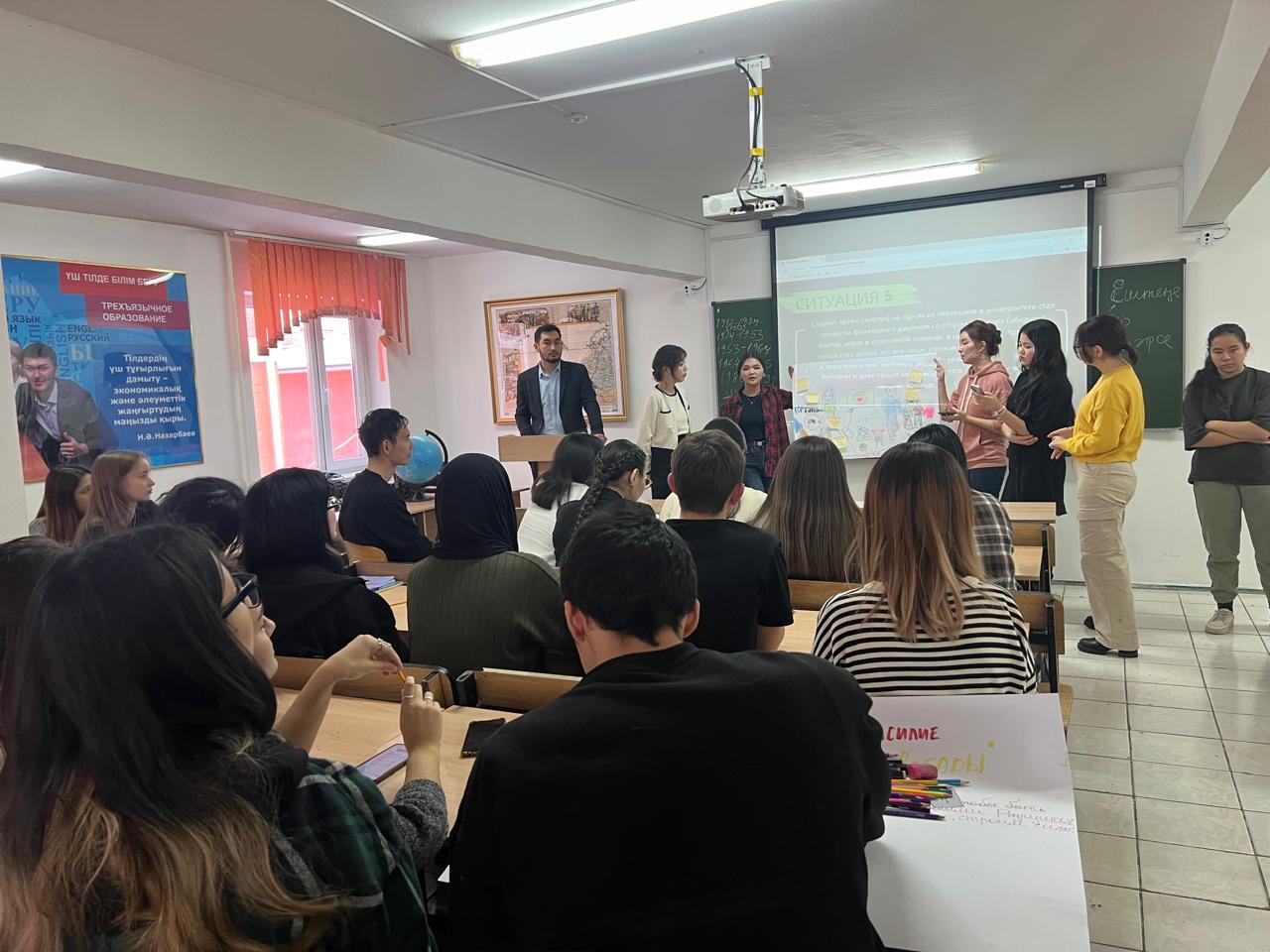 On November 22, 2024 under the guidance of Doctor of Psychology, Professor of the Department of Pedagogy and History Abdrashitova T.A., 4th year students of the educational program “Pedagogy and Psychology” Askarov D., Domina K. and Bazar A. conducted a workshop “Stop Bullying”. Each participant left with new knowledge and inspiration.