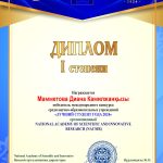 As a result of the competition, Diana Kamilzhankyzy Mammetova was awarded a 1st degree diploma, and her scientific article was included in the XII International Scientific Journal “Science and Education: New Times”.