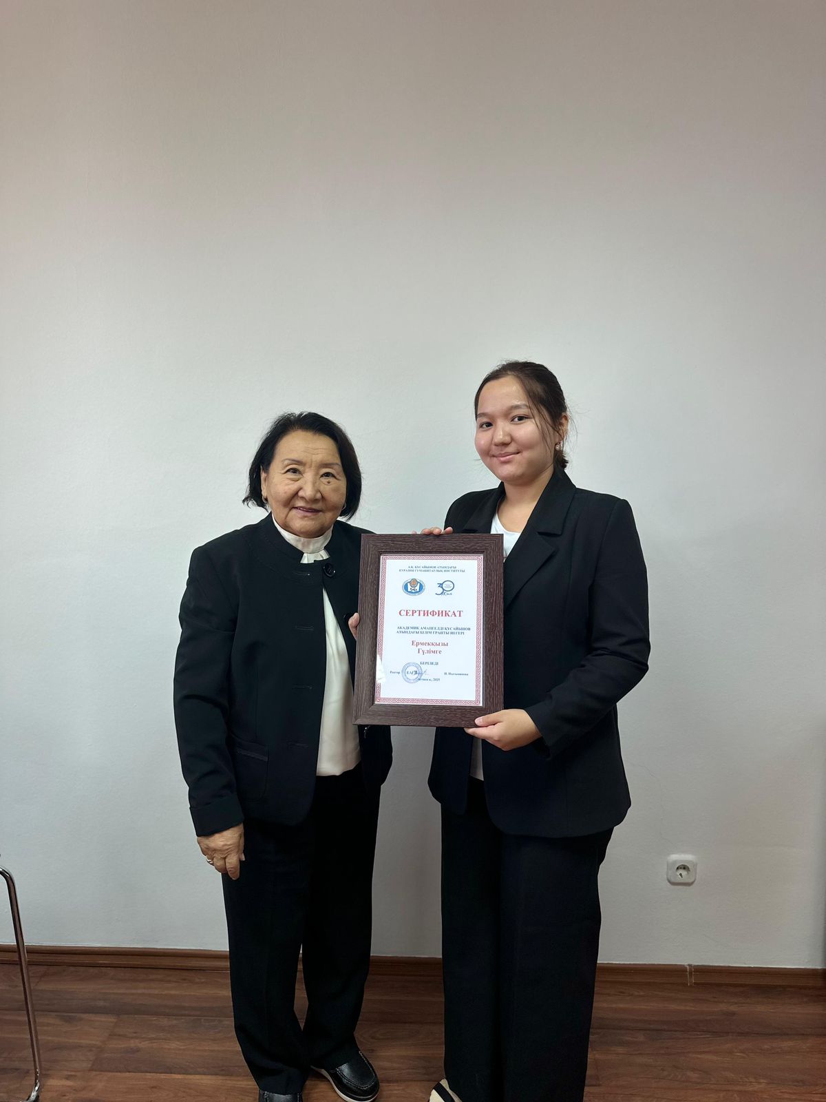 The recipient of the honorary award was student of the History educational program (academic group T-25-02) Yermekkyzy Gulim. Congratulations, Gulim!