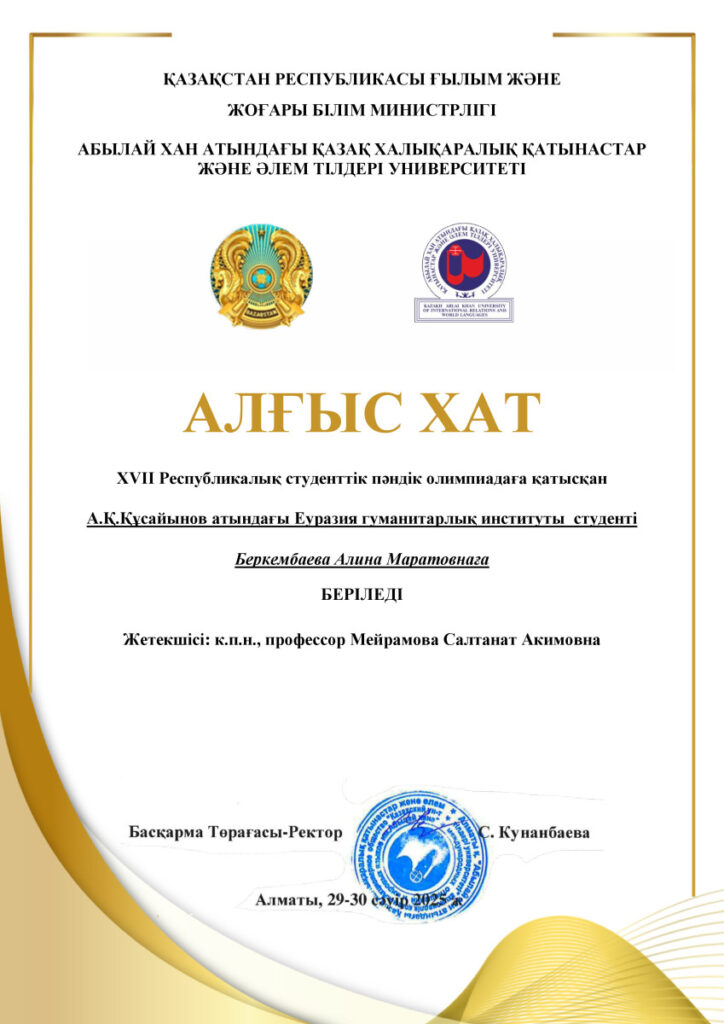 ЖаңалықтарУчастие во II этапе Республиканской студенческой предметной олимпиады Модератор-1 Сайта / 30.04.2025