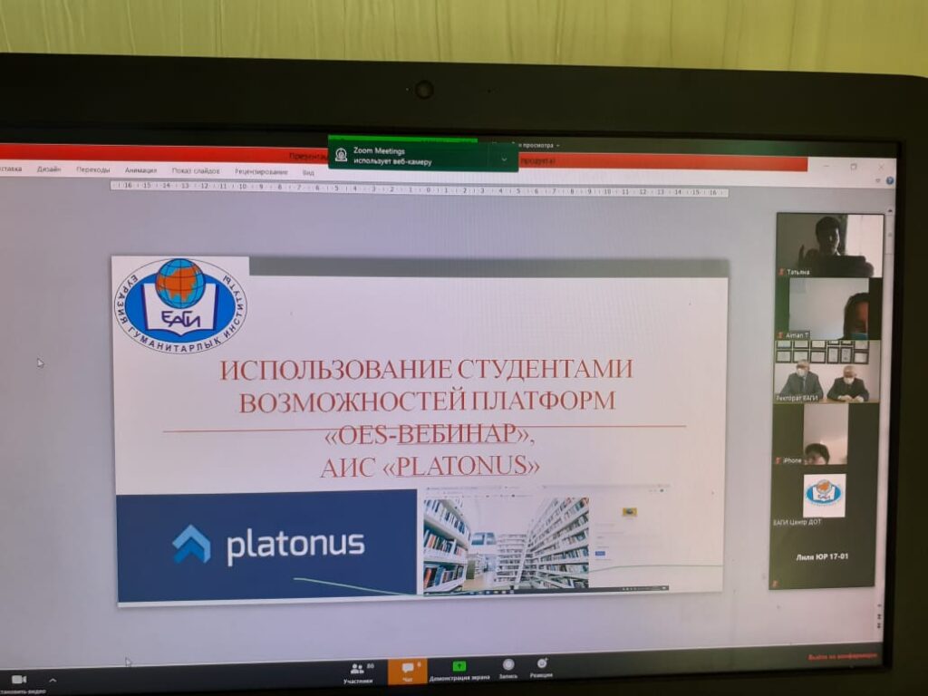 ЖаңалықтарВ ЕАГИ прошел обучающий вебинар для студентов по использованию возможностей образовательных платформ «OES-Вебинар»», АИС «Platonus» Модератор-1 Сайта / 10.04.2020