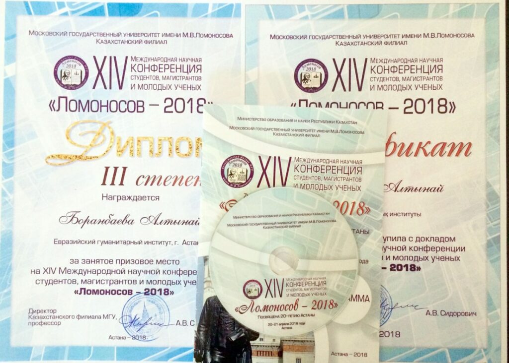ЖаңалықтарПризер XIV Международной научной конференции «Ломоносов – 2018» Модератор-1 Сайта / 03.05.2018