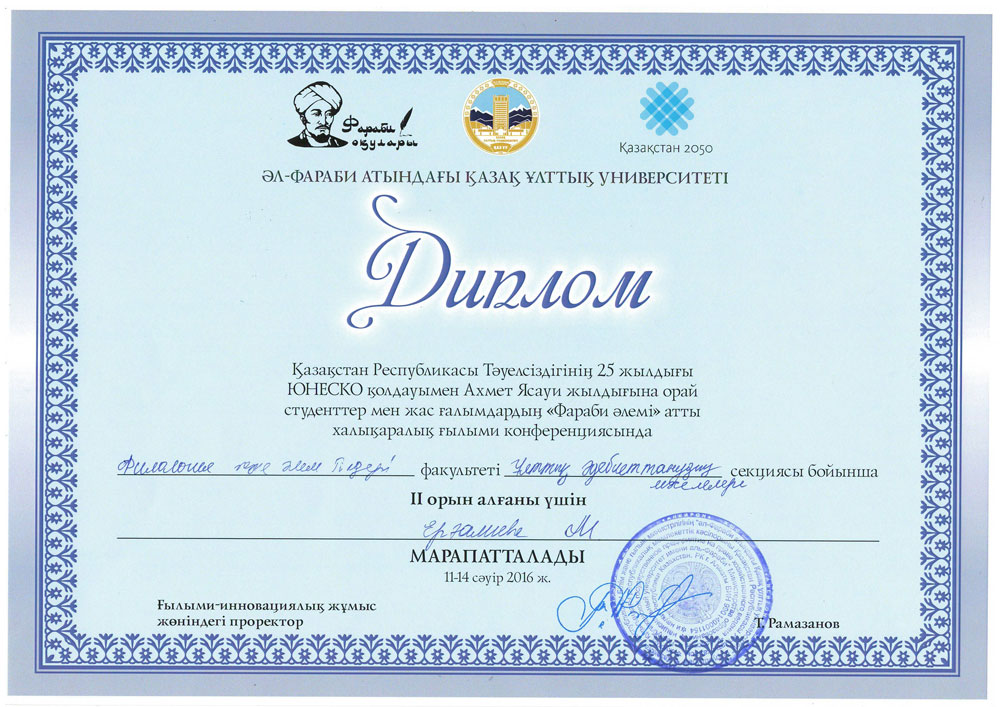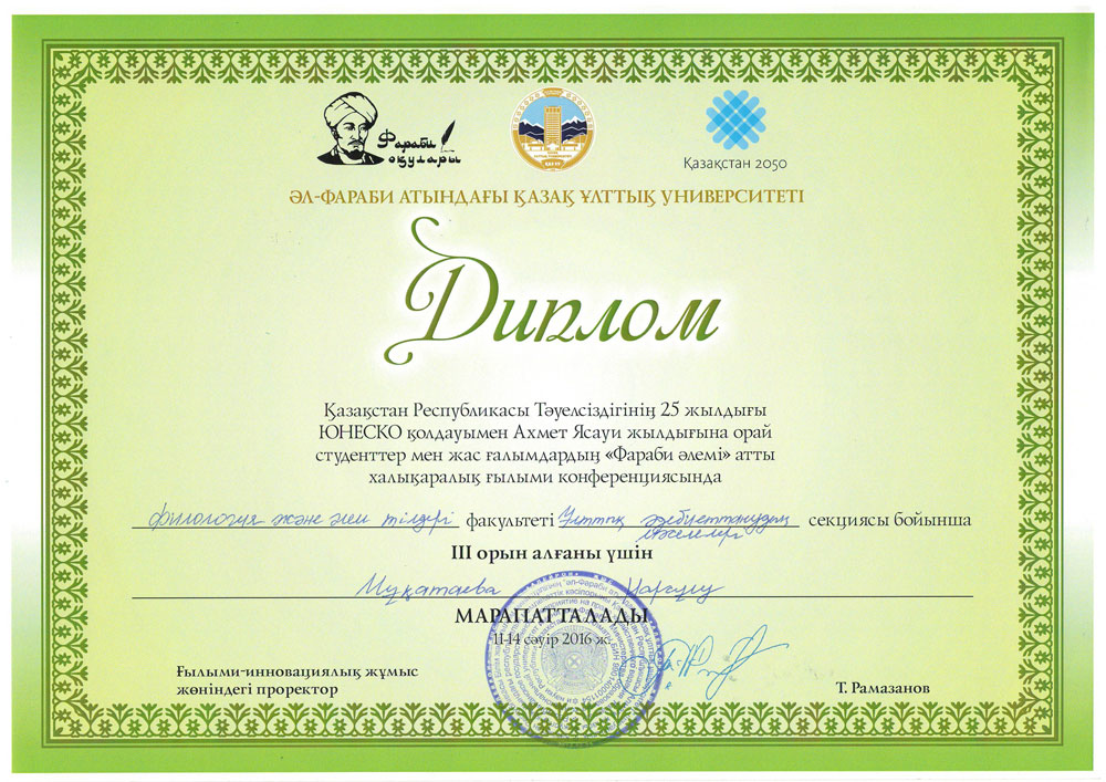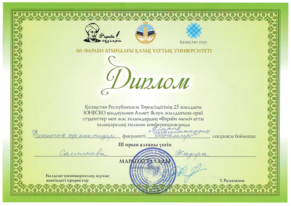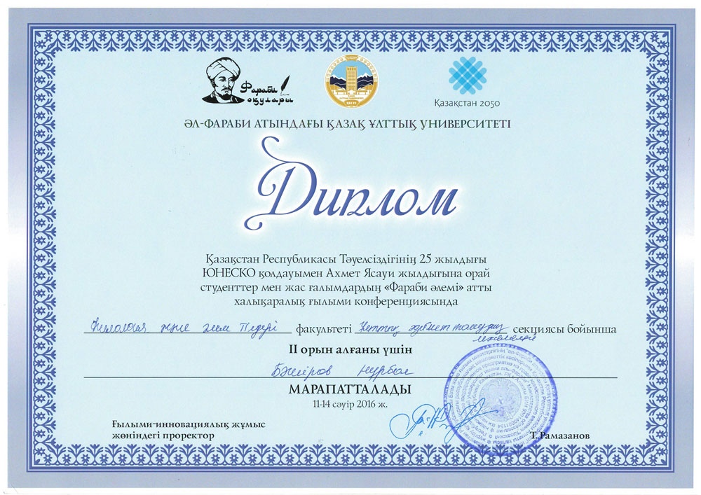 Поздравляем призеров международной научной конференции студентов и молодых ученых «Фараби әлемі»