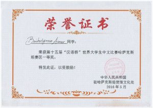 ЕАГИ студенті қытай тілін білуге қатысты халықаралық конкурсында I орынды иеленді
