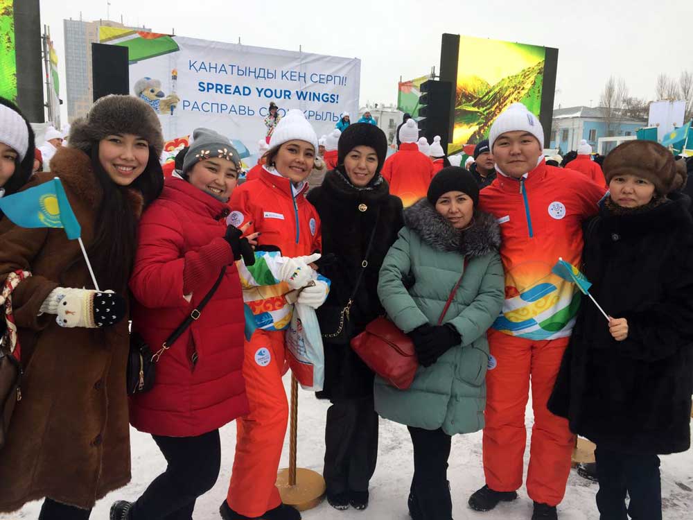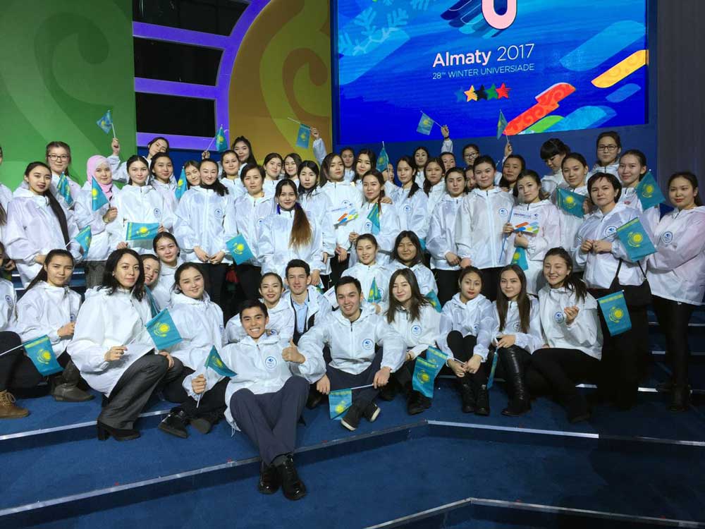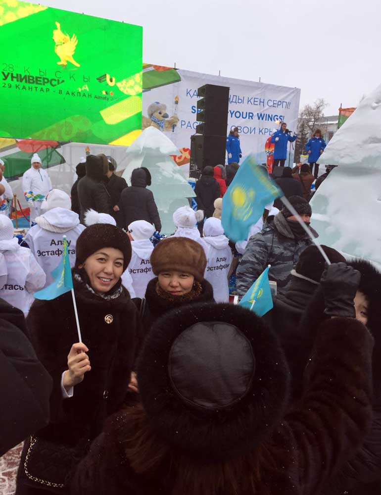 28-ші Бүкіләлемдік қысқы Универсиаданың алғашқы алауы Астанада 25 қаңтарда жағылды. Еуразия гуманитарлық институтының ИЯК-16-01, ИЯК-16-02 тобының студенттері екі кезеңге бөлінген Универсиада алауының эстафетасына қатысты. Бірінші кезең «Назарбаев Университетінен» «Бәйтерек» монументіне дейін, ал екінші кезең «Бәйтерек» монументінен оң жағалаудағы қалалық әкімдікке дейін жалғасты. Эстафетаның жалпы ұзақтығы 12 километрді құрады. 3,5 сағат бойы 60 адам елорданың орталық көшелерімен жүріп өтті. Алау ұстағандардың арасында Астананың әйгілі спортшылары мен қоғам қайраткерлері болды. Қазақстанда Универсиада алауы жалпы 22500 шақырым жолды жүріп өтеді, оның 200 шақырымын алау ұстаушылар алып жүреді. ЕАГИ студенттері бұл іс-шараға үлкен абыроймен қатысып, жағымды да әсерлі эмоциялар алды.