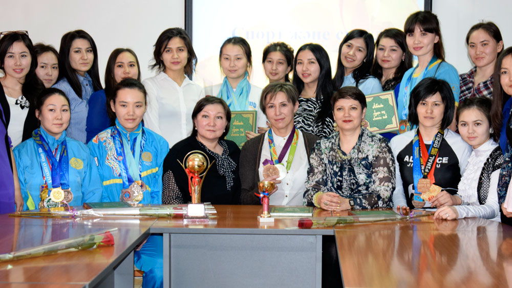 Көктемгі мереке қарсаңында педагогика кафедрасында «Асыл қазына» үйірмесінің мүшелері «Спорт және сұлулық» тақырыбында дөңгелек үстел өткізді. Осы іс-шараға еліміздің әйгілі спорт шеберлері қатысты.