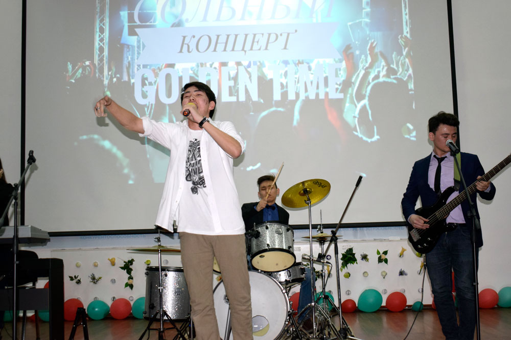Студенттер, оқытушылар және институт қонақтары Golden time тобының орындауындағы керемет музыкалды туындыларды тыңдады. Концертте әйгілі де танымал әртүрлі музыкалды бағыттарды орындаушылардың туындылары және де топтың жеке туындылары орындалды. Концертке топ қатысушыларының ата-аналары мен жақын туыстары шақырылды. Бұл концерттің жағымды және позитивтік атмосферасын орнатты. Сахнада да сондай атмосфера болды. Балалар өздерінің музыкаларына толық еніп, залға жағымды энергетика сыйлай отырып өздерінің аспаптарында сүйсіне ойнады. Зал оларды толық қолдап отырды. Golden time тобының барлық әндері сезімге толы жазылған. Концерт соңында көрермендер бір-бірімен алған әсерлері жайлы бөлісті.