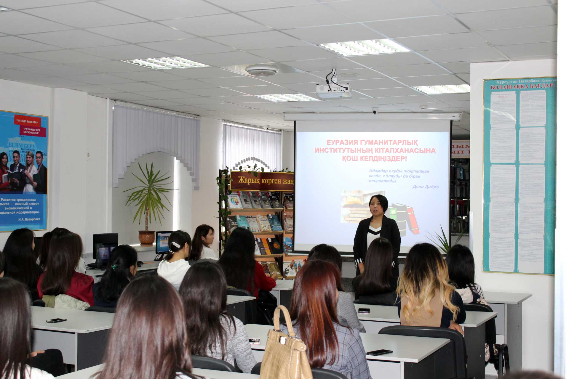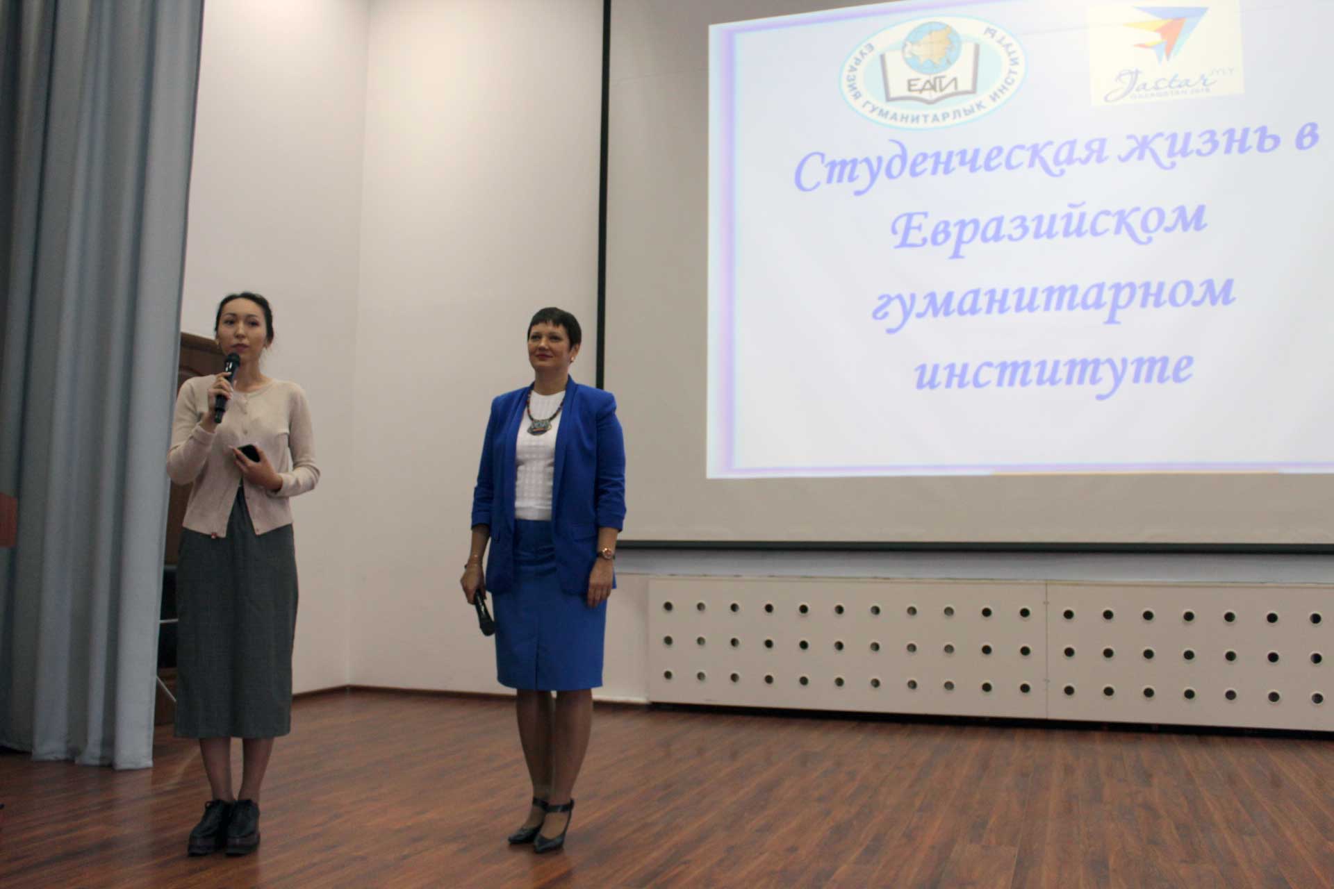 2017 жылдың 2-6 қыркүйегінде Еуразия гуманитарлық институтының конференц-залында институт әкімшілігінің бірінші курс студенттерімен кездесуі өтті. Кездесулердің басты мақсаты бірінші курс студенттерін ЖОО-ның әкімшілігімен, топ кураторларымен, студенттік өзін-өзі басқару көшбасшыларымен, ЕАГИ жарғысымен, жоғары оқу орны студентінің ар кодексімен және оқытудың кредиттік технологиясы бойынша оқу үдерісін ұйымдастырудың ережелерімен таныстыру болды. Институттың бірінші проректоры, психол.ғ.к., профессор А.Д. Исмаилов тілек және қолдау сөздерін білдірді. Проректор ЕАГИ-де оқу үдерісінің ерекшеліктеріне тоқталды, студенттердің келешекте өз салаларында бәсекеге қабілетті маман болуларына қажетті сапалы білім алуларына барлық жағдай жасалғанын атап өтті.