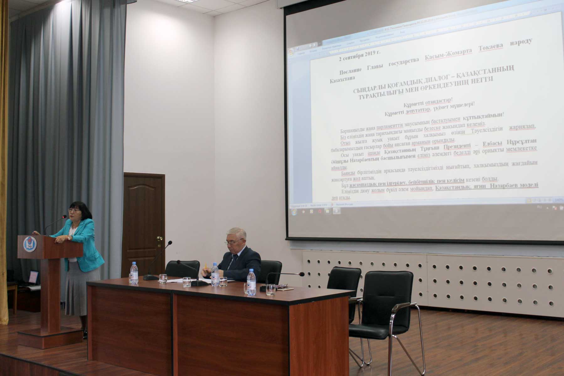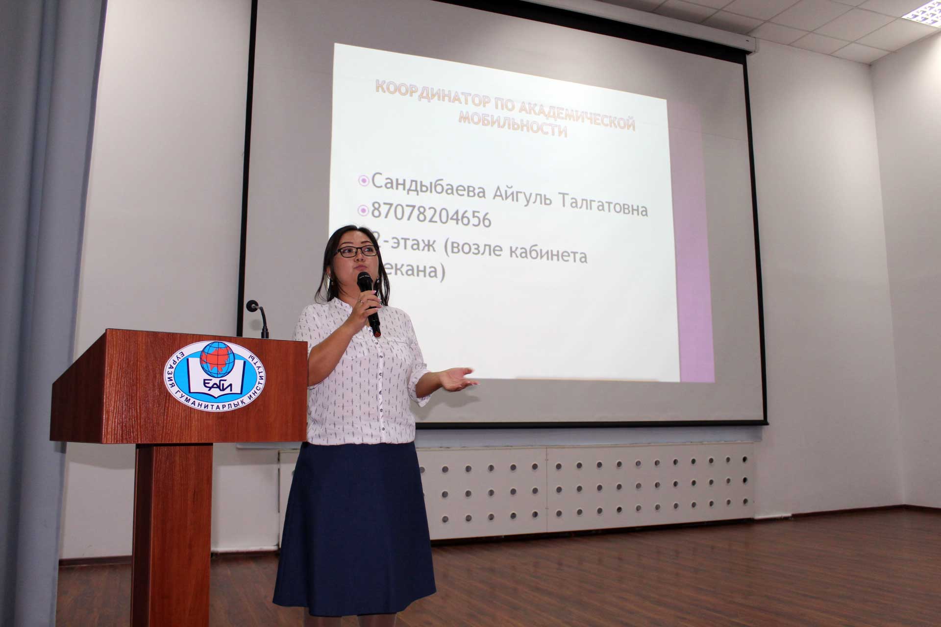 Бірінші курс студенттерін оқу және ғылыми жұмыс жөніндегі проректор т.ғ.д., профессор Қ.Ә. Ахметов, институттың деканы, ф.ғ.к., доцент Қ.А. Мамаділ құттықтап, ЕАГИ-дегі оқу және тәрбие жұмысының негізгі ережелері туралы баяндады. Кездесу барысында студенттер сұрақ қойып, пікір алмасты. Сондай-ақ студенттер алдында пресс-орталықтың жетекшісі И.С. Воронцова, ЖІК төрағасы Н. Тырнахан сөз сөйледі.