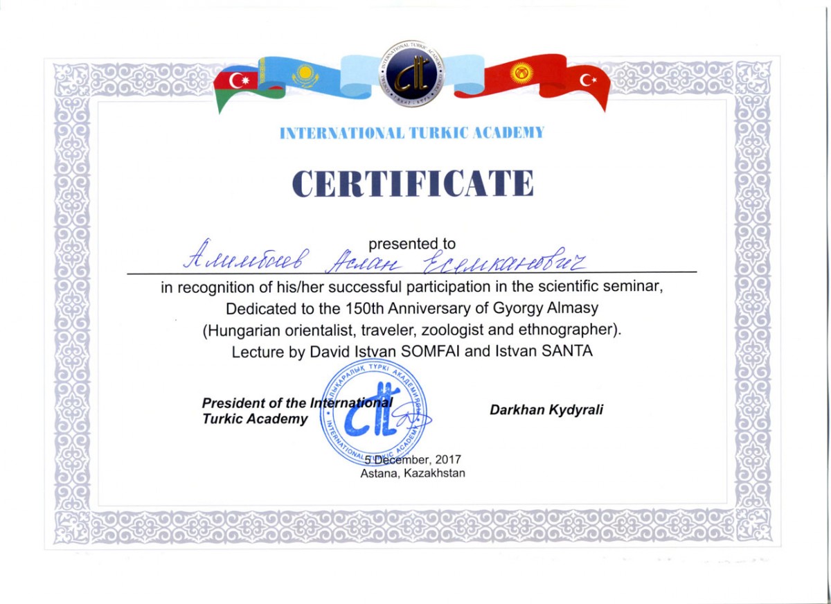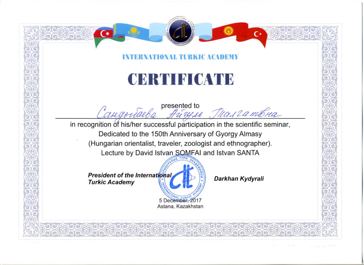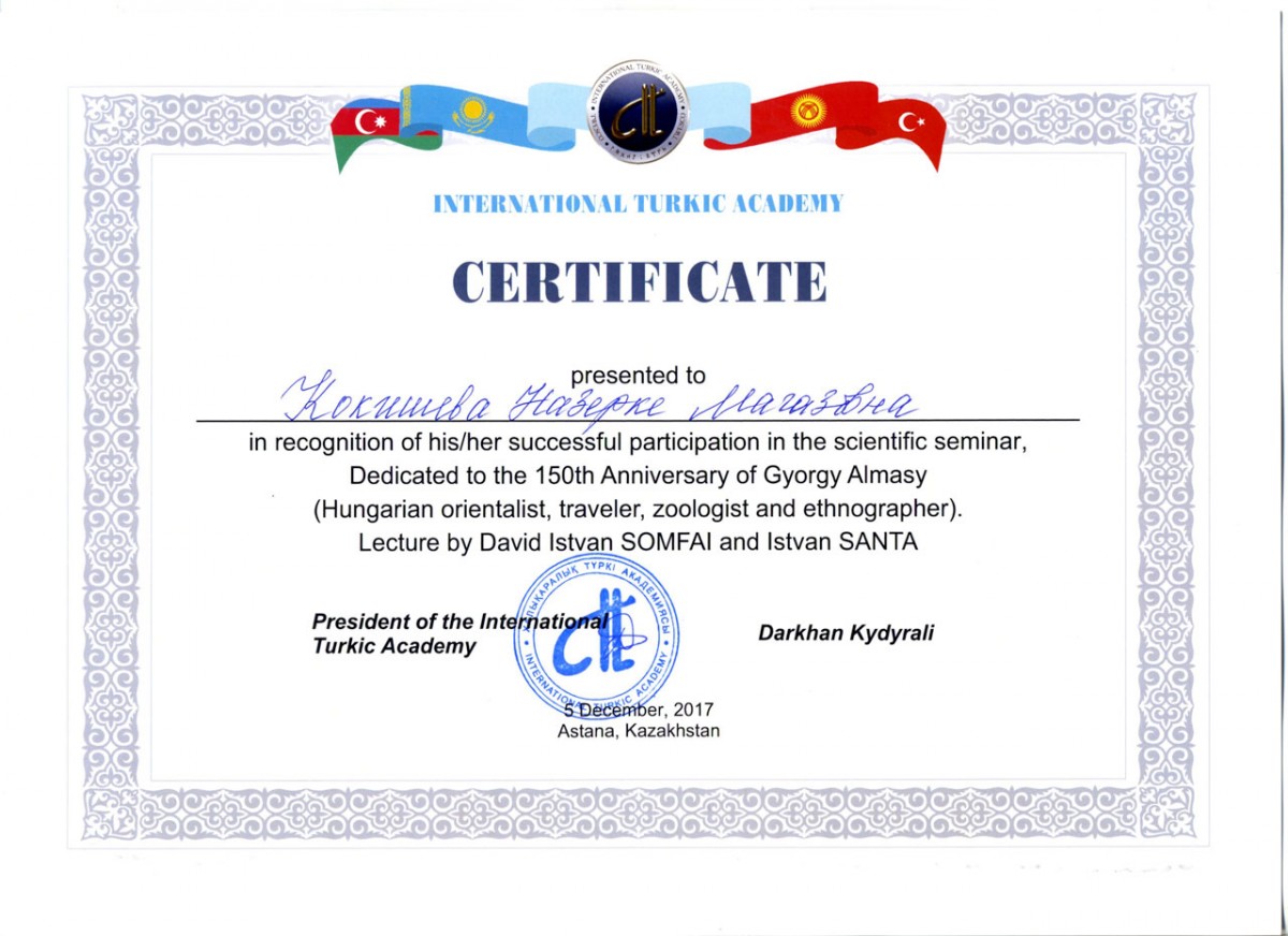 Халықаралық Түркі академиясы Венгрияның Қазақстандағы елшілігімен бірлесіп, 2017 жылғы 5 желтоқсан күні белгілі Мажар шығыстанушысы, саяхаттанушы, этнограф-ғалым Дьёрдь Алмашидің туғанына 150 жыл толуына орай дөңгелек үстел және фотосурет көрмесін ұйымдастырды. Д.Алмаши  ХХ ғ. басында Орталық Азияның Іле өзені, Ыстықкөл және Тянь Шань тауы өңірлеріне экспедиция ұйымдастырып, зерттеулер жүргізген.