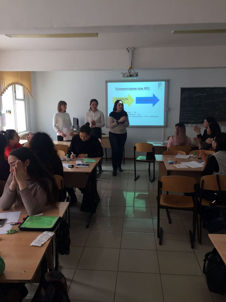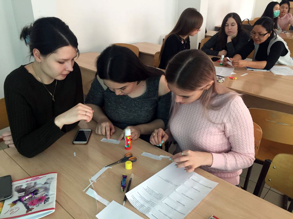 2018 жылдың 26-28 наурызында «Критерийлік бағалау» пәнінің шеңберінде «Педагогика және психология» мамандығының екінші курс студенттері үшін Астана қаласы №31 орта мектебінің мұғалімдері И.В. Белятко, Н.В. Дубилевич, Ф.К. Агубаева (біздің институтымыздың түлектері) тәжірибе сабақтарын өткізді. Олардың әдістемелік жұмыстағы бай тәжірибесі мен орта білімнің мазмұнын жаңарту аясында бағдарламаларды жүзеге асырудағы табыстары ЕАГИ үшін өте маңызды. Олар өткізген тәжірибе сабақтары студенттерге қиын теориялық материалды меңгеруге және критерийлік бағалауды практикада қолданудың дағдыларын қалыптастыруға көмектесті.