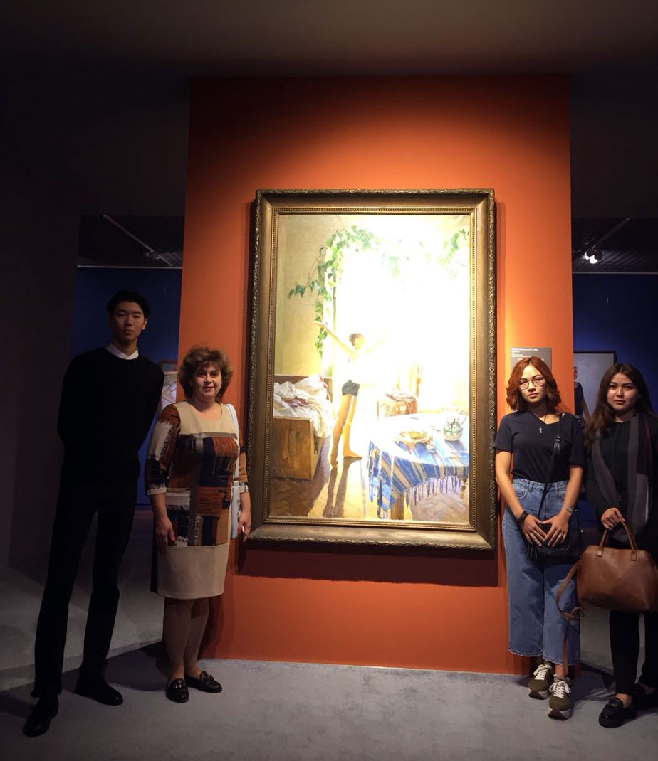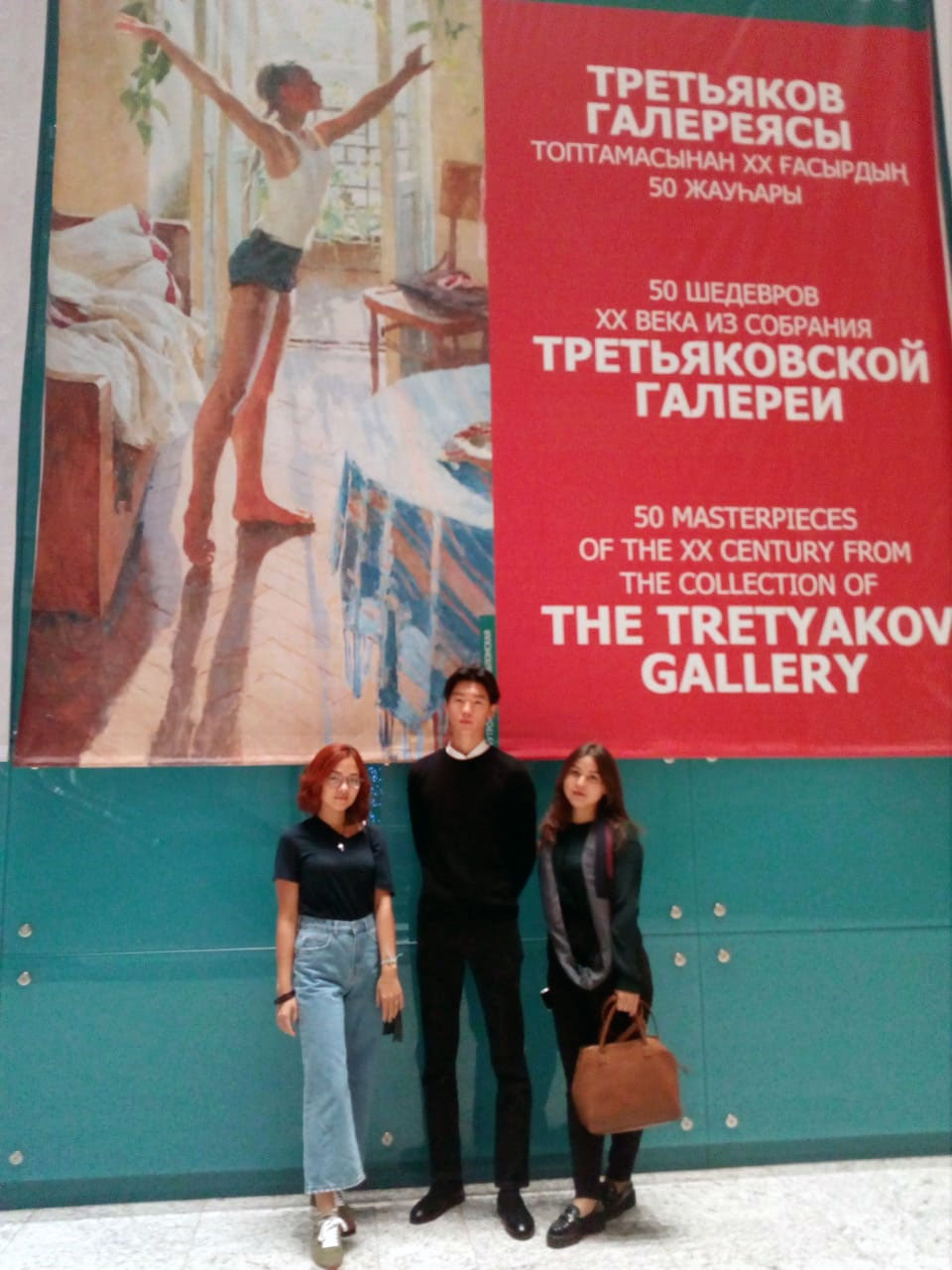 Рухани-адамгершілік тәрбие беру бойынша іс-шаралар аясында ИЯ-16-02 тобының студенттері кураторлары шетел тілдері кафедрасының аға оқытушысы О.В.Дьяченкомен бірге Қазақстан Республикасы Ұлттық мұражайында өткен «Третьяков галереясының топтамасынан ХХ ғасырдың 50 жауһары» атты көрмесіне барды. Экспозиция барлық ХХ ғасырды: 1900 жылдан 1980 жылға дейін қамтиды. Студенттер Константин Коровин, Игорь Грабарь, Михаил Нестеров, Абрам Архипов, Константин Юон, Петр Кончаловский, Илья Машков, Аристарх Лентулов, Роберт Фальк, Павел Кузнецов, Георгий Нисский сынды шеберлердің туындыларымен танысты.