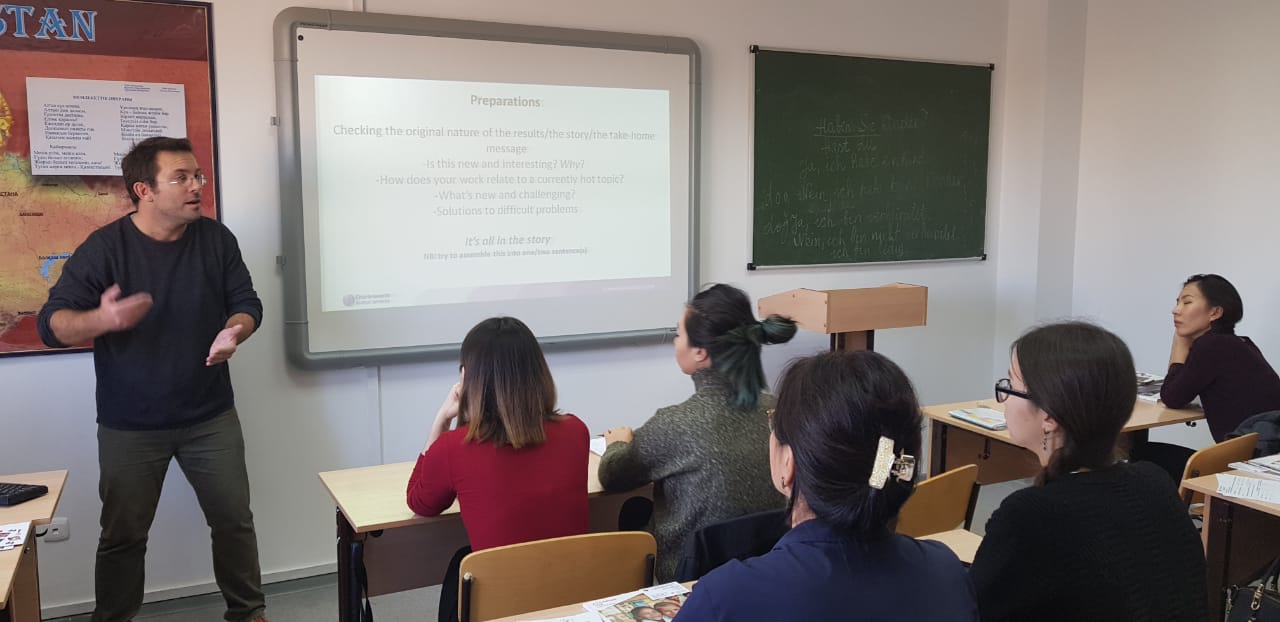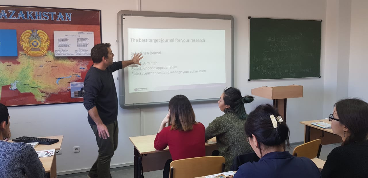 2018 жылдың 9 қазанында шетел тілдері кафедрасының оқытушылары мен жоғары курс студенттері «ELT upgrade: practices and innovations with skillful presenter» семинарының жұмысына қатысты. Аталған іс-шара «The Charlesworth Group» тәуелсіз және дүниежүзінде жоғары сапалы баспа болып танылған компанияның өкілі болып табылатын Dr.Gareth Dyke қатысуымен Макмиллан баспасы ұйымдастырды және өткізді. Семинар соңында барлық қатысушыларға сертификаттар табыс етілді.