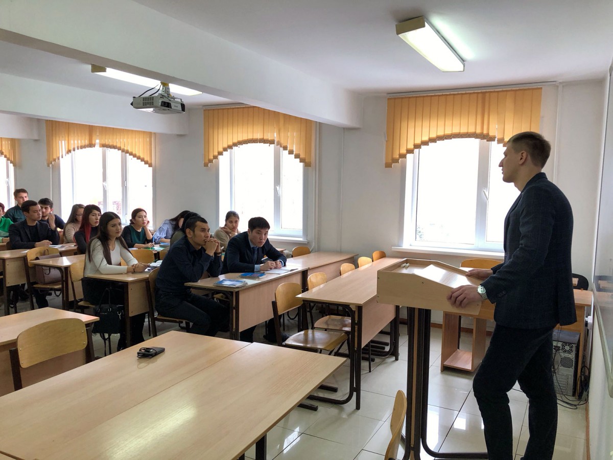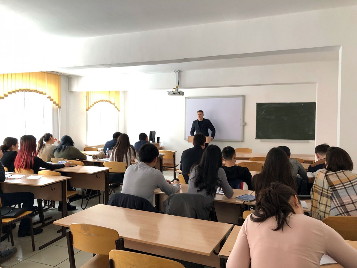 28 қарашада ЮР-16-01, ЮР-16-02 академиялық топтарының 2016 жылғы «Құқықтану» мамандығының түлегі Рыбачук Владимир Александровичпен кездесуі өтті.