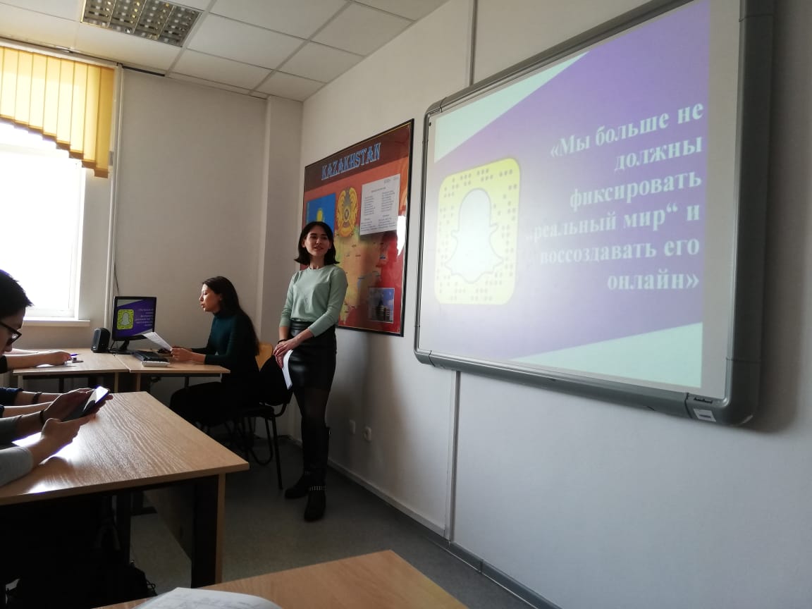 2019 жылдың 1 наурызында Жастар жылына арналған іс-шараларды жүзеге асыру аясында ПД-15-01 тобында «Бізге шабыт беретін адамдар» тақырыбында кураторлық сағат өткізілді. Топ студенттері отандық және шетелдік шабыт беретін табысты адамдар туралы презентациялар мен баяндамалар дайындады: кинорежиссер Айсұлтан Сейітов, киім және зергерлік бұйымдар дизайнері Марциа Бизоньин, актриса Эмма Вотсон, Snapchat құрушы Эван Шпигель. Студенттердің ойынша, бұл адамдар еліктеу үшін үлгі болып табылады. Презентацияда үлкен қызығушылық пен белсенді талқылау болды.