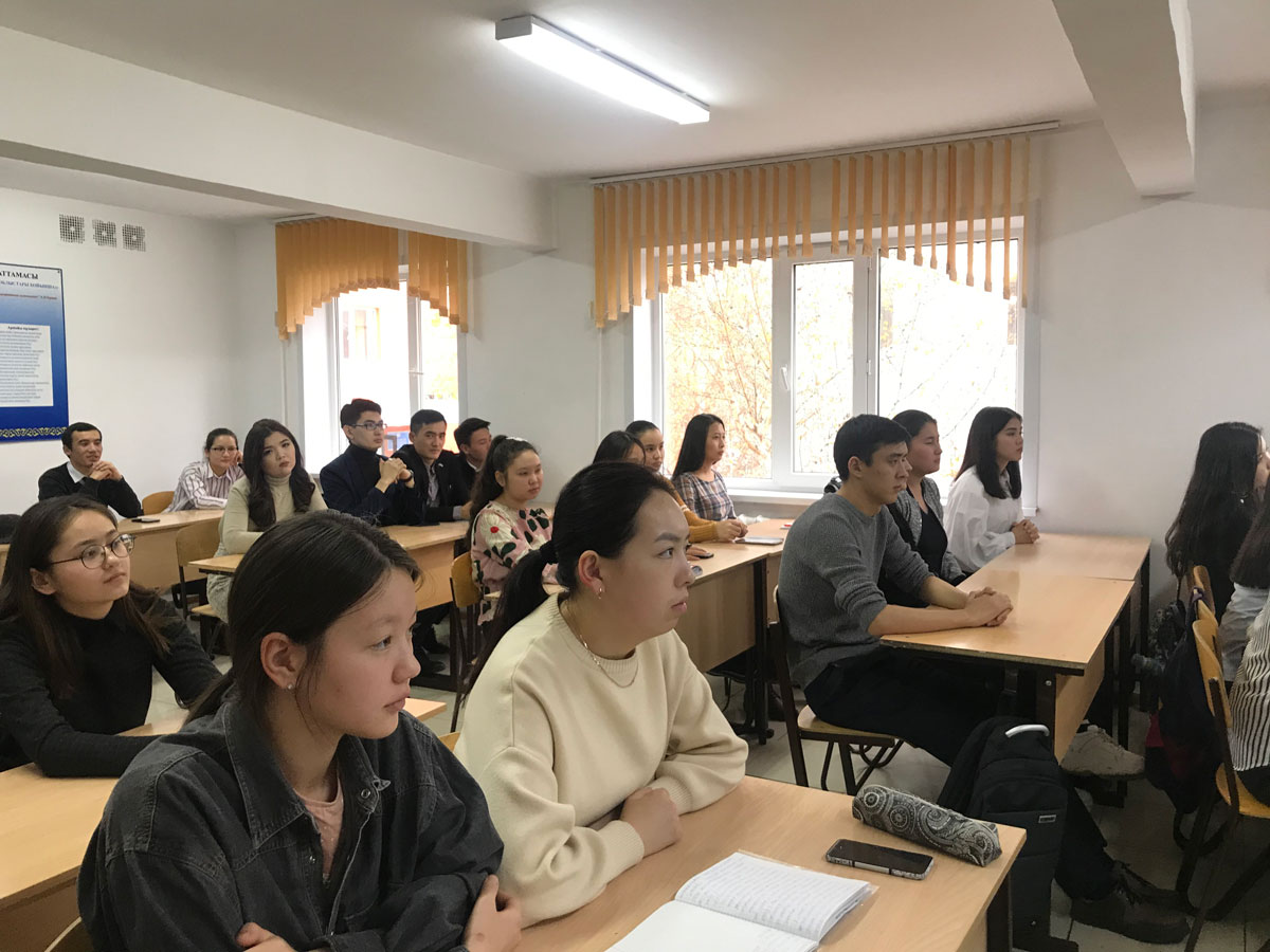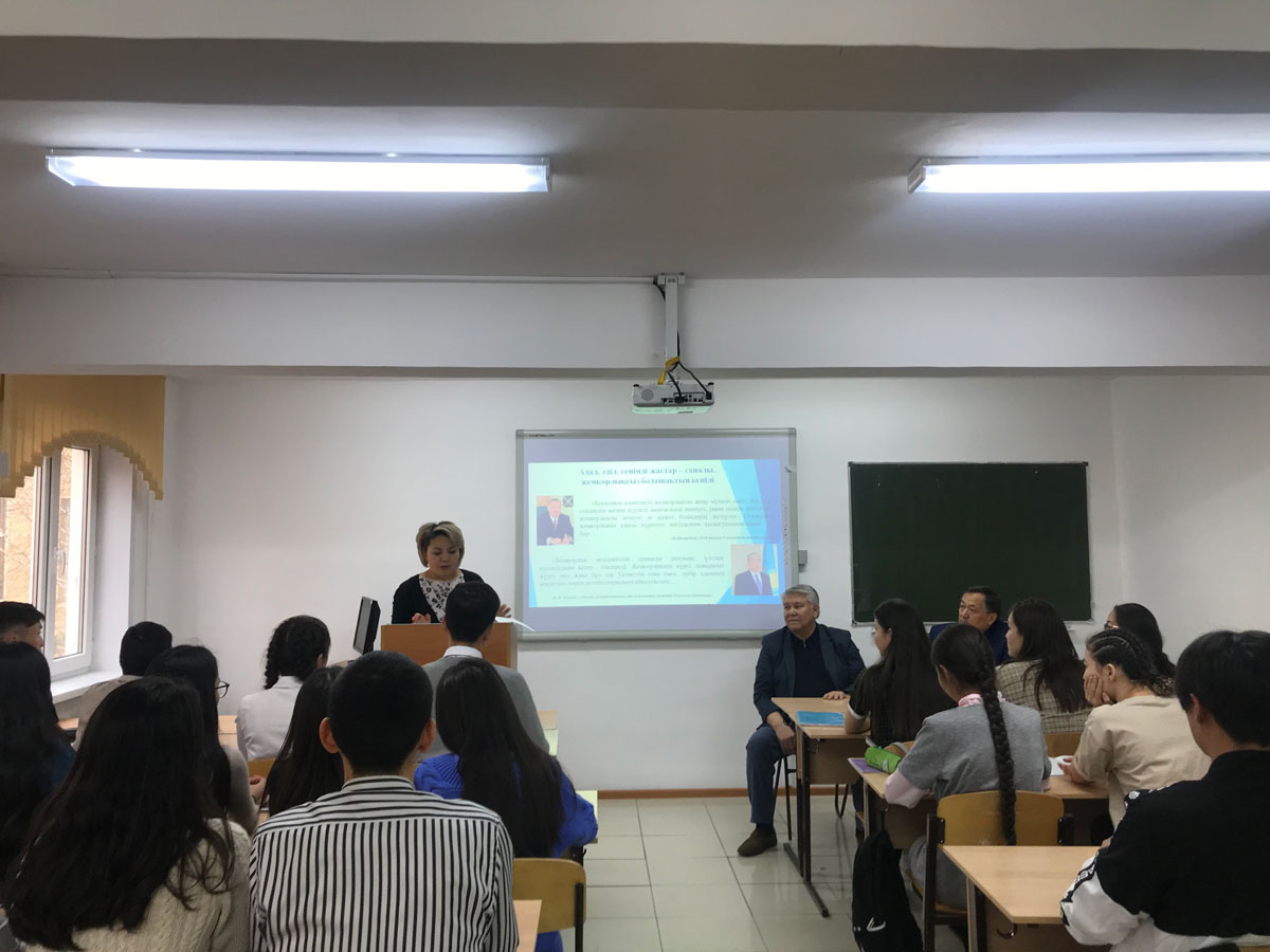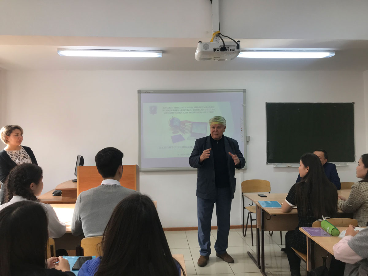 Студенттермен кездесуге «Жаңару» сыбайлас жемқорлыққа қарсы жалпыұлттық қозғалыс» республикалық қоғамдық бірлестігінің Астаналық филиалының директоры Д. Рахметуллин және «Байқоңыр» аудандық филиалының директоры М. Есенов, Сыбайлас жемқорлыққа қарсы қызметінің аса маңызды істер жөніндегі офицері А. Кенебаева, заң пәндері кафедрасының аға оқытушысы, з.ғ.м. Г.Канафина қатысты.