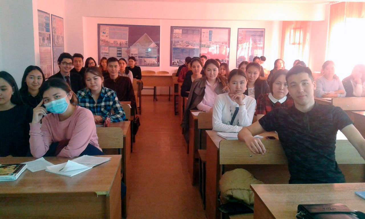 2019 жылдың 22 –ші қараша күні заң пәндері кафедрасының аға оқытушысы з.ғ.м. Айткулова Арайлым Мырзахановна 1-желтоқсан Тұңғыш Президент күніне орай ЮК-17-01,02 топтарымен “Менің тұңғыш Президентім” тақырыбында тәрбие сағатын өткізді. Сабақтың мақсаты: студенттерге қазақ халқының тұңғыш президенті Нұрсұлтан Әбішұлы Назарбаевтың ерекше қадір-қасиетін,тұлғалық тұғырын түсіндіру, өмір жолдары туралы түсінік беру,ерен еңбегімен, шығармаларымен таныстыру тәрбиелік-Қазақстанның өркендеуіне үлес қосатын, туған тілін,туған жерін сүйетін, тарихымызды бағалай білетін,ұлттық салт-дәстүрімізді қастер-лейтін, алғыр да білімді ұрпақ тәрбиелеуге шақыруТоп студенттері тәрбие сағатына белсенді түрде қатысып, сонымен қатар өз ойларымен бөлісті.