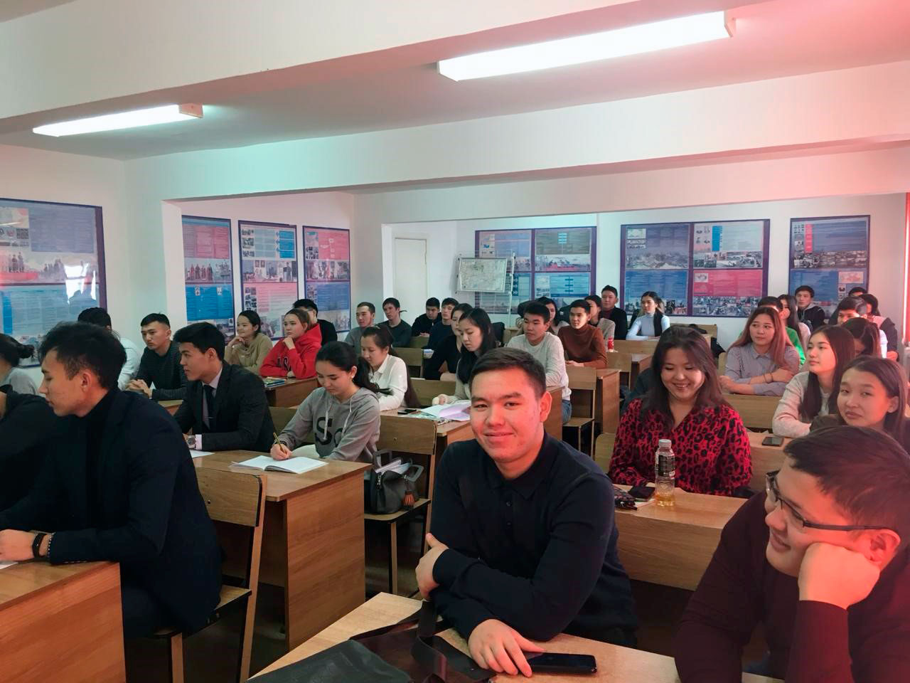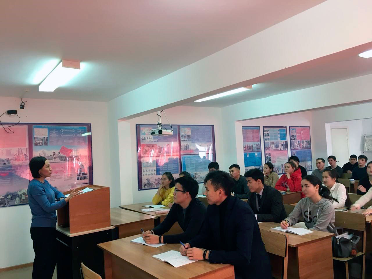 2019 жылдың 28 –ші қараша күні заң пәндері кафедрасының аға оқытушысы з.ғ.м. Байболатова Фатима Тулегеновна Тәуелсіздік күніне орай ЮТҚ-19-01 тобымен Тәуелсіздікке 28 жыл: “Тұғыры биік Тәуелсіздік!” тақырыбында тәрбие сағатын өткізді. Сабақтың мақсаты: студенттерге қазақ халқының тәуелсіздік жолындағы ерлік күресі мен ғасырлар бойы басынан өткен қиыншылықтарын айта келіп, осы қиын жылдары елінің азаттығын, еркіндікті аңсаған ұлт зиялыларына тоқталу. Тәуелсіз Қазақстанның 28 жыл ішіндегі қол жеткен жетістіктерімен таныстыру.Топ студенттері тәрбие сағатына белсенді түрде қатысып, сонымен қатар өз ойларымен бөлісті.