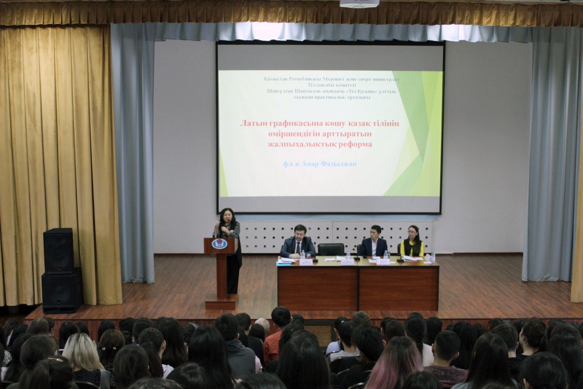 2019 жылдың 28 қараша күні Еуразия гуманитарлық институтында Қазақстан Республикасы Мәдениет және спорт министрлігі Тіл саясаты комитетінің тапсырысымен Шайсұлтан Шаяхметов атындағы «Тіл-қазына» ұлттық ғылыми-практикалық орталығының тілші-ғалымдары «Латын графикасына көшіру үдерісіндегі жастардың рөлі» тақырыбында семинар-кеңес ұйымдастырды. Семинар барысында әліпби реформасының жалпыхалықтық сипат алу жолдары анықталып, қазақ тілін дамытудағы латын графикасының рөлі туралы сөз қозғалды. Семинар-кеңеске жоғары және орта арнаулы оқу орындарының оқытушылары, докторанттар мен магистранттар, студенттер қатысып, өз ойларын ортаға салды.