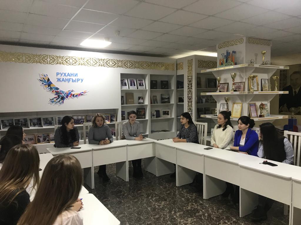 2019 жылғы 3 желтоқсанда ПМНО-17-01 тобы қазақ және орыс филологиясы кафедрасының доценті Д.Б. Аманжолованың жетекшілігімен адамгершілік-рухани білім беруді енгізу бойынша сынамалы ұйым болып табылатын №59 мектеп-лицейінде болды. Сабаққа қатысу және талдау «Орыс тілін оқыту әдістемесі» пәнін меңгерту аясында соңғы кезең болып табылады, оның мақсаты жаңартылған бағдарлама бойынша орыс тілін оқыту (немесе сауат ашу) тәжірибесімен таныстыру. Шағын топтарға бөлінген 3 курс студенттері білім беру мазмұнын жаңарту аясында оқытылған мұғалімдердің бірнеше сабақтарына қатысты.
