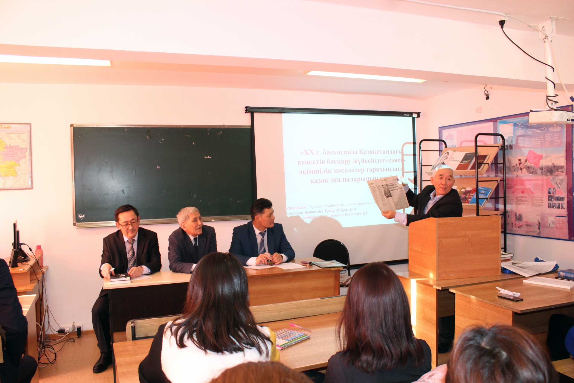 Желтоқсанның 10 күні т.ғ.к., доцент Өскембаев Қанат Садуақасұлы Қазақстанның тәуелсіздік күніне арналған «АЛАШ ЗИЯЛЫЛАРЫ АРМАНДАҒАН ТӘУЕЛСІЗ ҚАЗАҚСТАН» атты дөңгөлек стөл өткізді. Аға оқытушы Кеменгеров Ризабек Нарманбетұлы Көшке Кемеңгерұлы жайлы сырымен бөлісті. «Ұлт рухының тамыры – тарихта» атты Еуразия гуманитарлық институтының кітапханасы қызметкерлері ұйымдастыруымен кітаптар көрмесі қойылды. «Тарих» және «Бастауышта оқытудың педагогикасы мен әдістемесі» мамандығының студенттері белсене атсалысты.