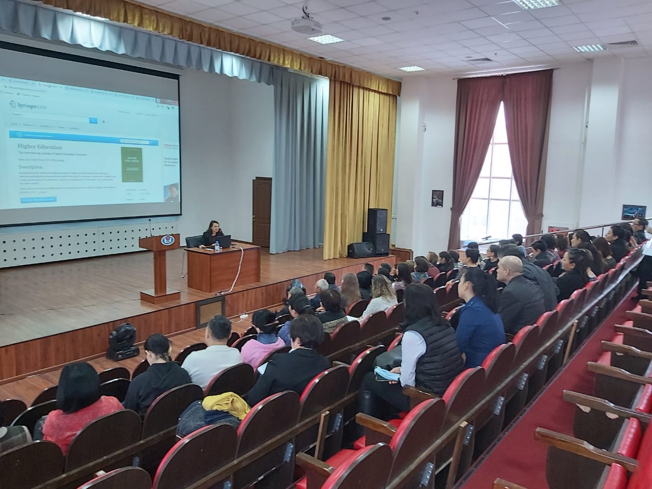 Семинардың лекторы – Springer Nature компаниясының лицензиялы менеджері Ирина Алексеевна Александрова институттың профессорлық-оқытушылық құрамы мен қызметкерлерін рейтингтік ғылыми журналдарда мақалалар дайындау және жариялау ерекшеліктерімен таныстырып, олардың сұрақтарына жауап берді.
