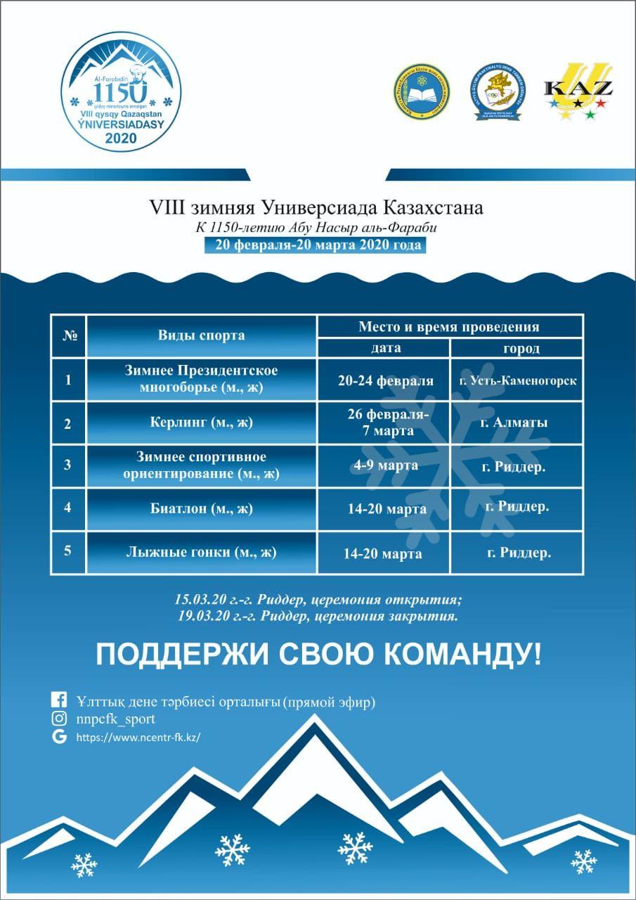 Қазақстан Республикасы Білім және ғылым министрлігімен Әбу Насыр әл-Фарабидің 1150 жылдық мерейтойына арналған VIII қысқы Универсиадасын өткізеді.
