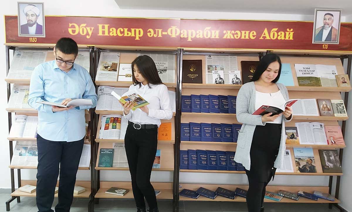 Абай Құнанбаевтың өмірі мен шығармашылығына арналған еңбектер мен зерттеулер ұсынылды. Ұлы Абайдың өмірі мен мұрасы болашақ ұрпақ үшін әділеттіліктің, гуманизмнің және жоғары рухтың өркендеуі жолында әрқашан жарқын үлгі болады. Көрмеге «Абайтану» бойынша 38 том таңдамалы еңбектер; Ердембеков Б. Абайтану; Тарақов Ә.С. Абайдың аудармашылық таланты; Абай (Ибраһим) Құнанбайұлы. Қара сөздер; Абай. Сен де бір кірпіш дуниеге. Өлеңдер мен қарасөздер қойылды.